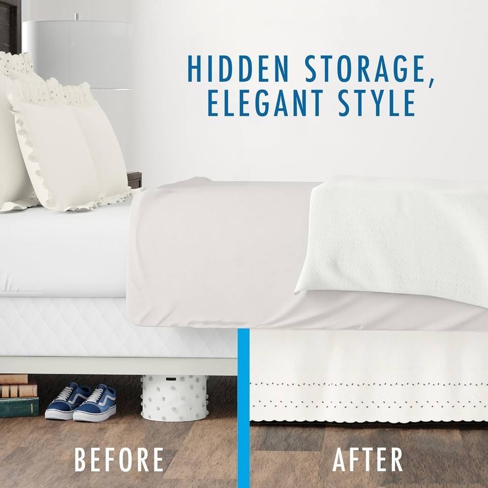 Hidden Storage: Cleverly conceals box springs, bed frames, and legs, while allowing you to elegantly tuck away items under your bed, keeping your space neat and tidy.