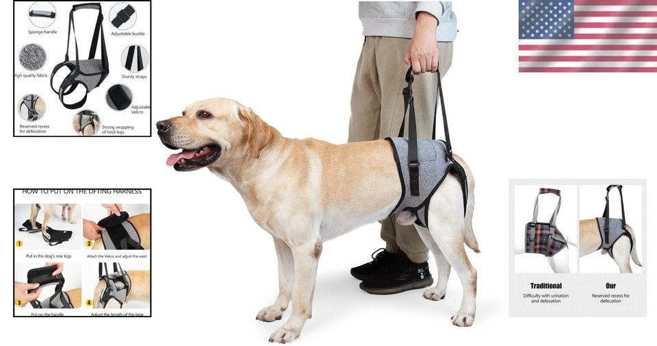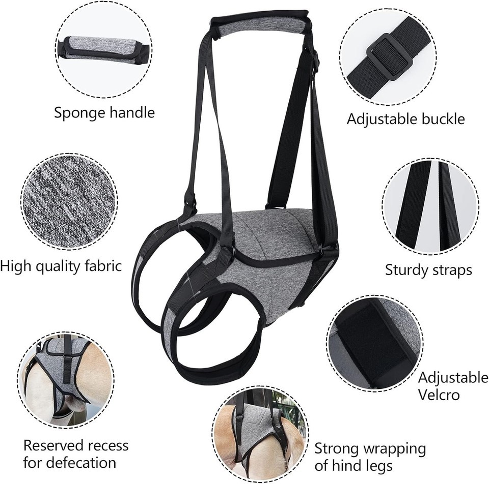 Features: Hind leg support,Urination groove,Solid abdominal coverage,Adjustable straps,Comfortable handle,Velcro closure,Non-slip design,Suitable for elderly dogs,Helps with arthritis,Supports ACL recovery,Fits large dogs