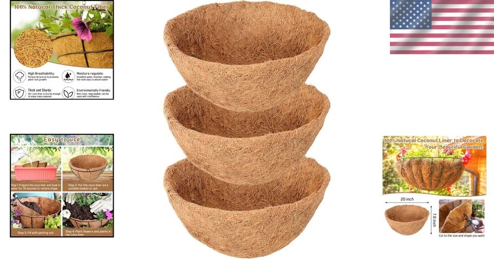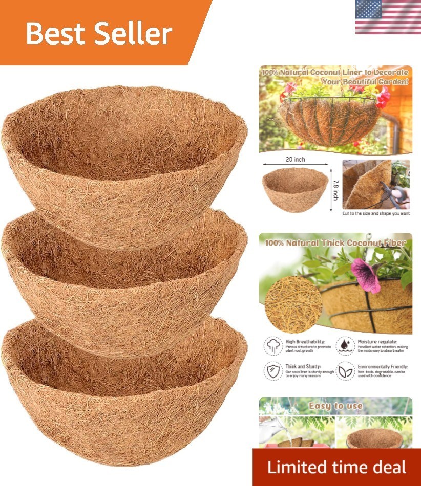 Versatile 3-Pack 20 Inch Coconut Fiber Liners for Hanging Planters & Vegetables