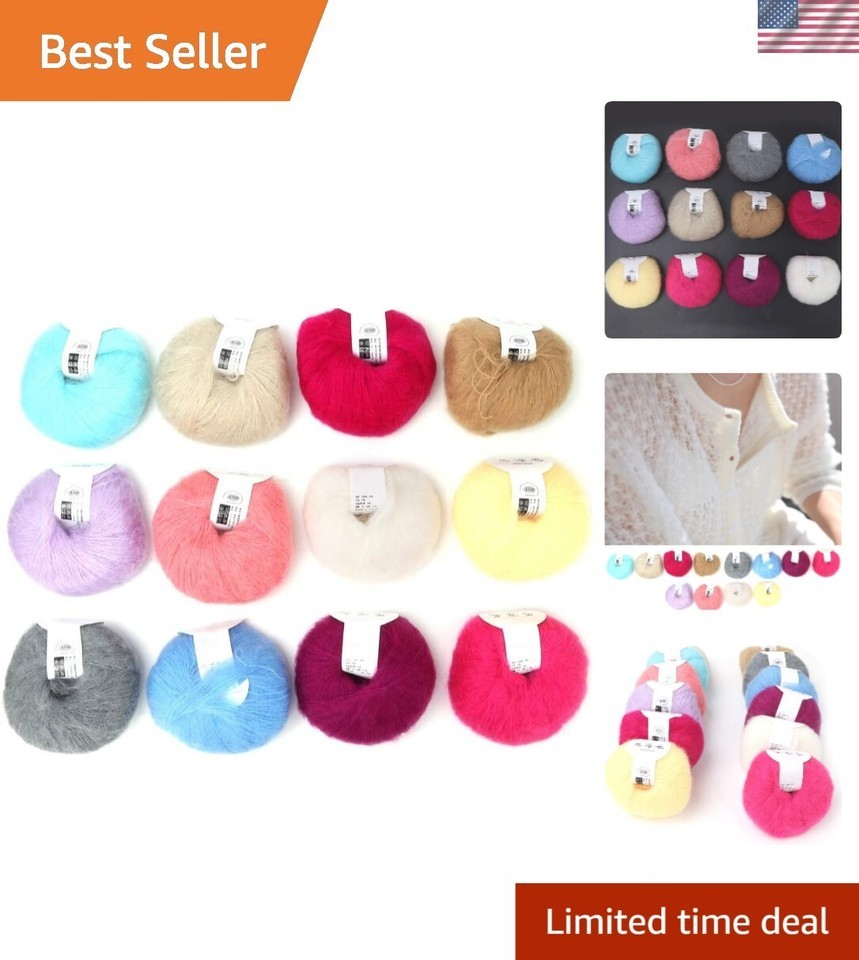 Luxurious Soft Mohair Yarn Set: 12 Vibrant Colors for DIY Knitting Crochet
