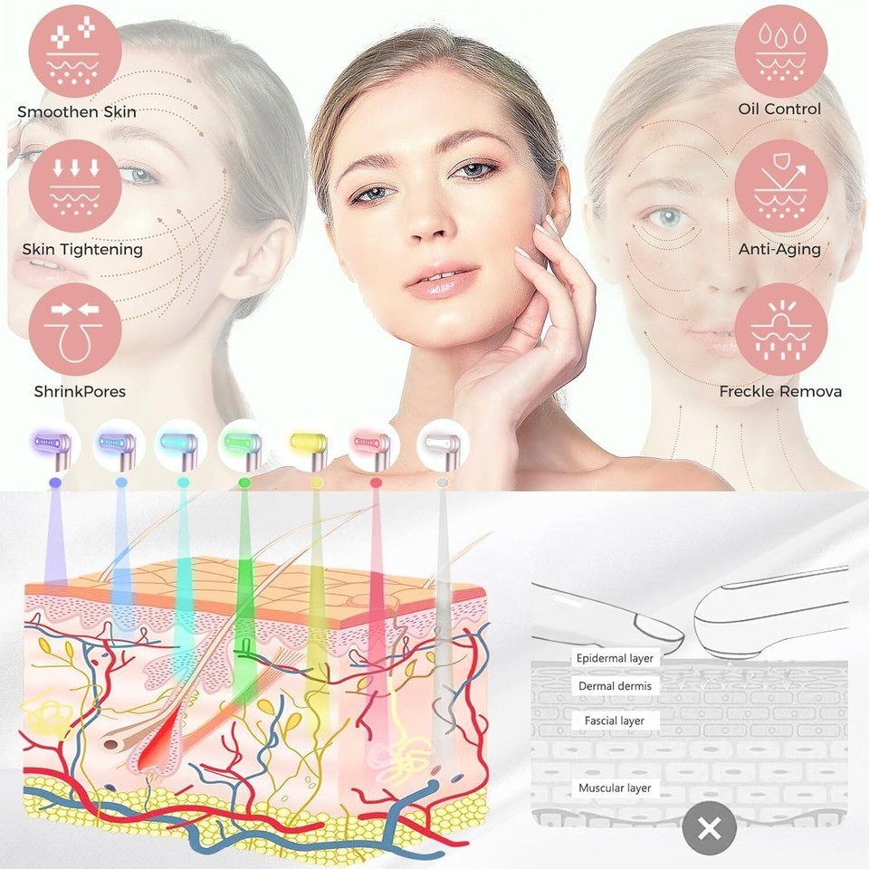 7-Color Light Therapy: Designed for versatility, each color targets specific skin concerns: