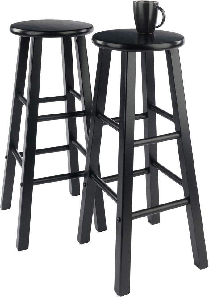 Modern 29-Inch Bar Stools Set - Polished Black Finish & Comfortable Design