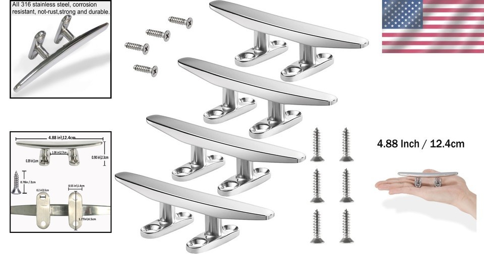 Marine-Grade 316 Stainless Steel Boat Cleat - Strong & Elegant 4.88 Inch Cleat
