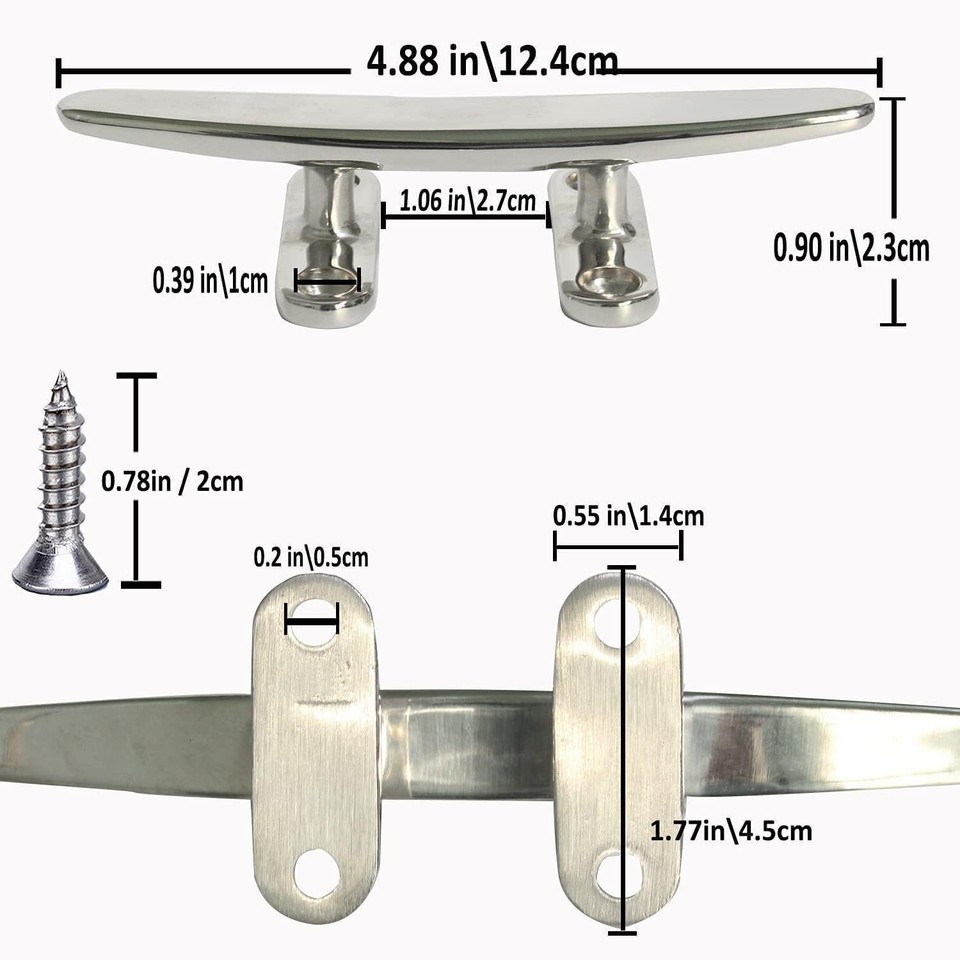 When it comes to securing your boat or kayak, quality matters. Choose our Marine-Grade 316 Stainless Steel Boat Cleat, meticulously crafted for unparalleled strength and elegance. With its stunning mirror finish and robust construction, this 4.88-inch cleat is not just functional but also an exquisite addition to your marine setup.