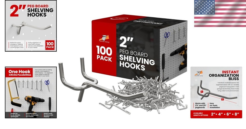 Efficient 100 Pack Chrome Pegboard Hooks - Organize Tools & Accessories Quickly