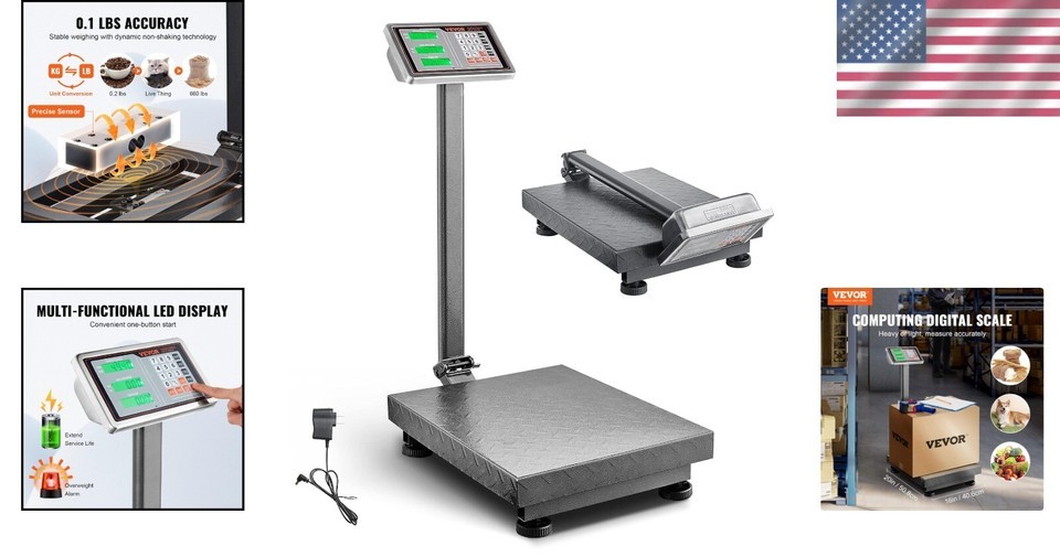 Ultimate Accuracy: Experience unparalleled precision with our digital computing platform scale, boasting a vast weighing capacity of 0.2 lbs (100 g) to 660 lbs (300 kg) and a remarkable accuracy of 0.1 lbs (50 g). Perfect for a multitude of applications, this scale is ideal for industries, courier companies, markets, and even home use.