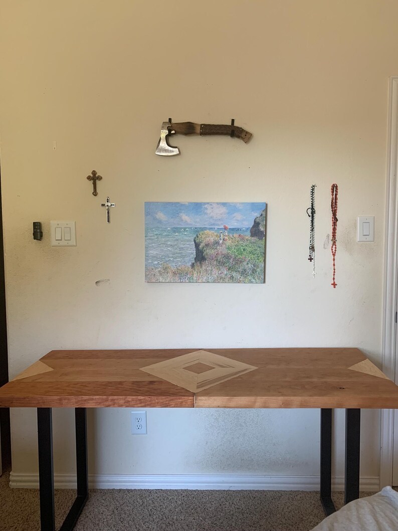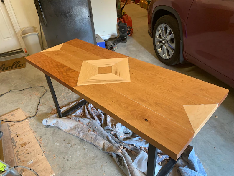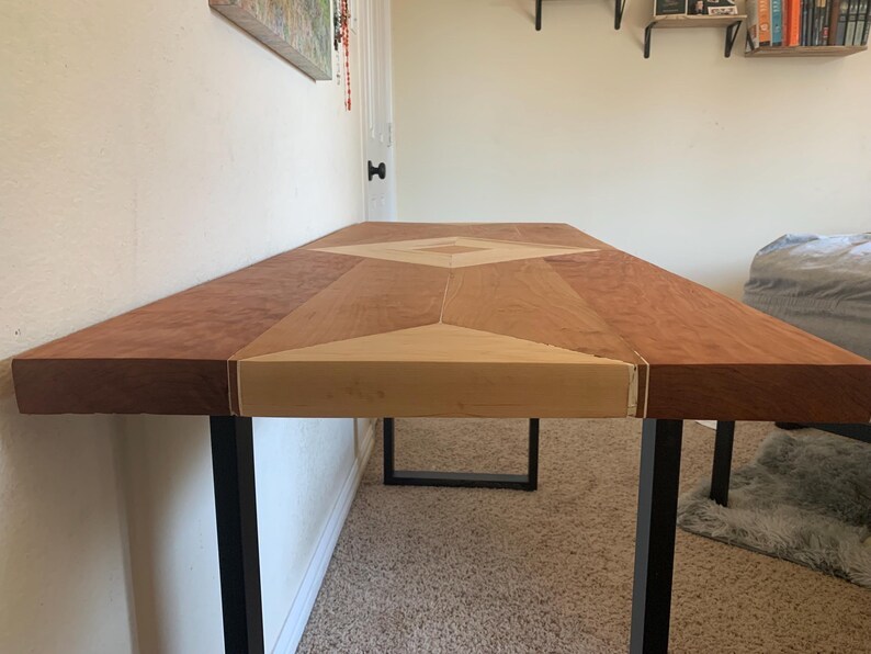 Elevate your workspace with this industrial modern executive desk, featuring a stunning solid wood top made from carefully selected maple and cherry hardwoods and supported by bold, square metal legs. Designed for both durability and style, this handcrafted desk blends natural elegance with an industrial modern edge, making it a timeless addition to any home office, creative studio, or professional workspace.