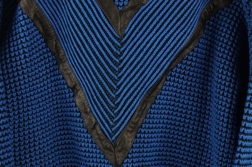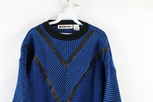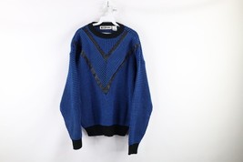 Vintage 90s Streetwear Mens Medium Leather Trim Chunky Knit Crewneck Sweater