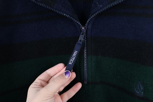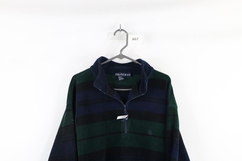 Vintage 90s Nautica Mens XL Striped Color Block Half Zip Fleece Pullover Sweater