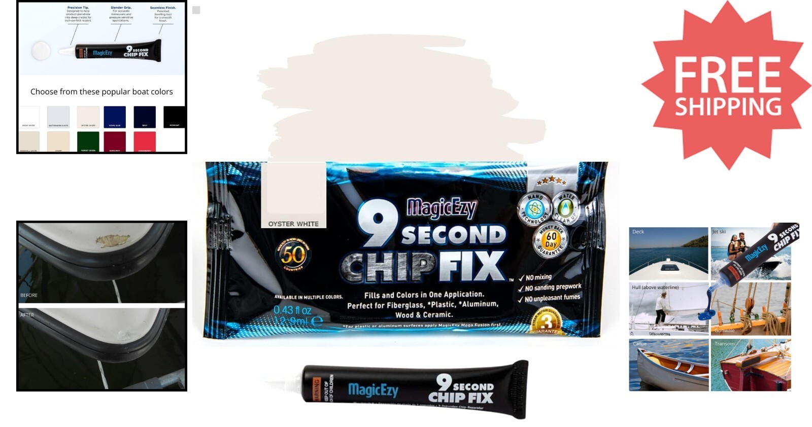 Repair fiberglass boat damage quickly and effortlessly with our one-part epoxy repair filler. This all-in-one kit fills, adheres, and colors in a single tube, eliminating the need for sanding or prep work. Just clean the area, apply, level, and wipe away smears?repair chips and deep cracks in seconds. Available in popular boat gelcoat colors, it?s versatile enough for above-waterline areas, cracks in ceramic or porcelain, and even chip repairs on carbon fiber, aluminum, PVC, acrylic, and plastic. Featuring nanotechnology, this ultra-tough, water-resistant, non-toxic marine epoxy penetrates deep into pores for a durable fix. To ensure fast and reliable delivery, we work with multiple fulfillment partners and suppliers. Depending on availability and location, your order may ship from different warehouses or arrive in packaging that varies from item to item. Tracking details are typically provided shortly after shipment, and customer satisfaction remains our top priority.