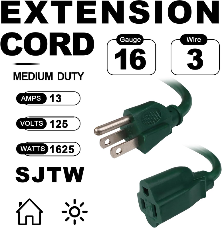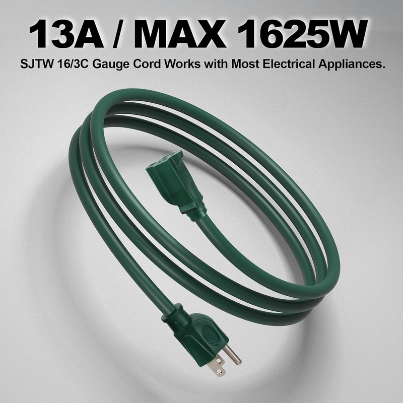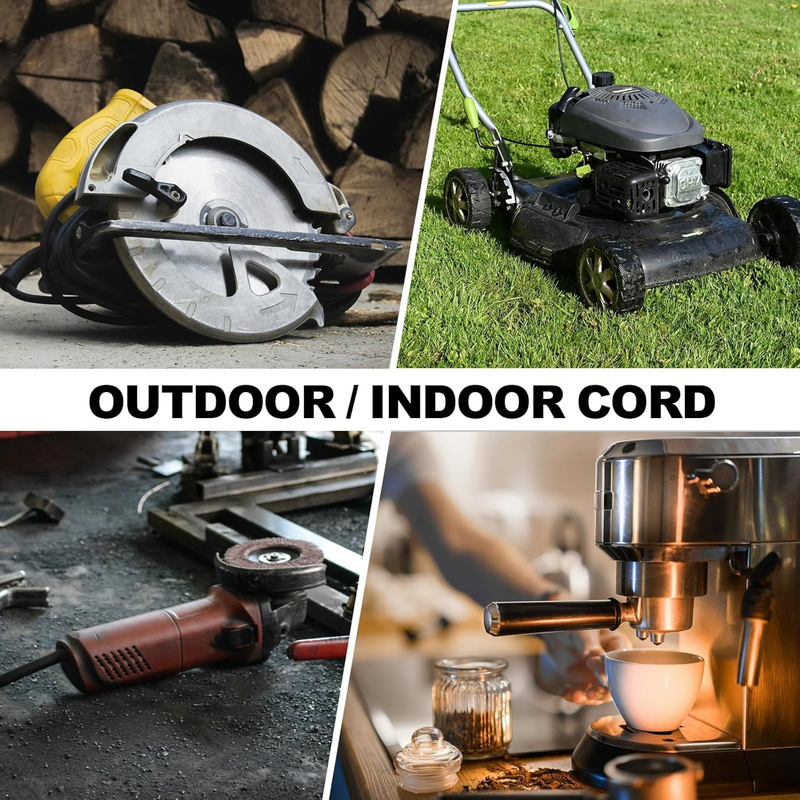 Indoor Outdoor Power Cord - Perfectly for your household appliances, generator, HEV, DIY electric tools, lawn mower, pressure washer, Christmas and Spooky Halloween light system.