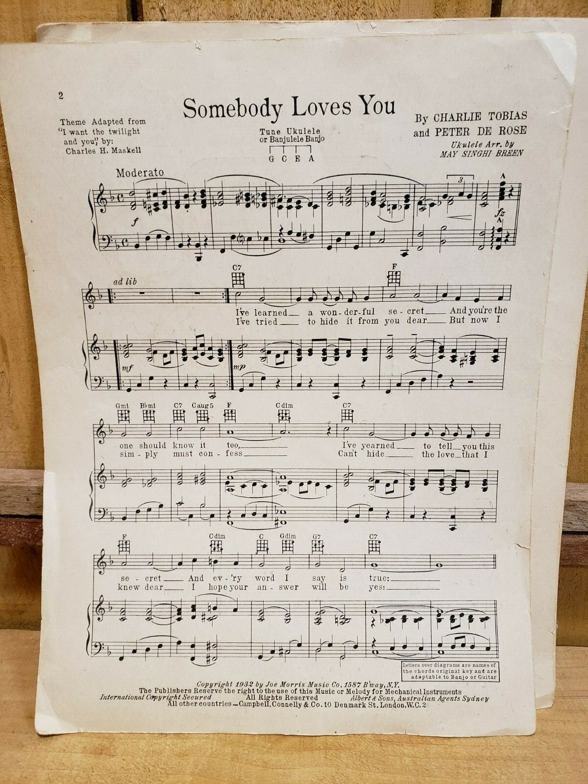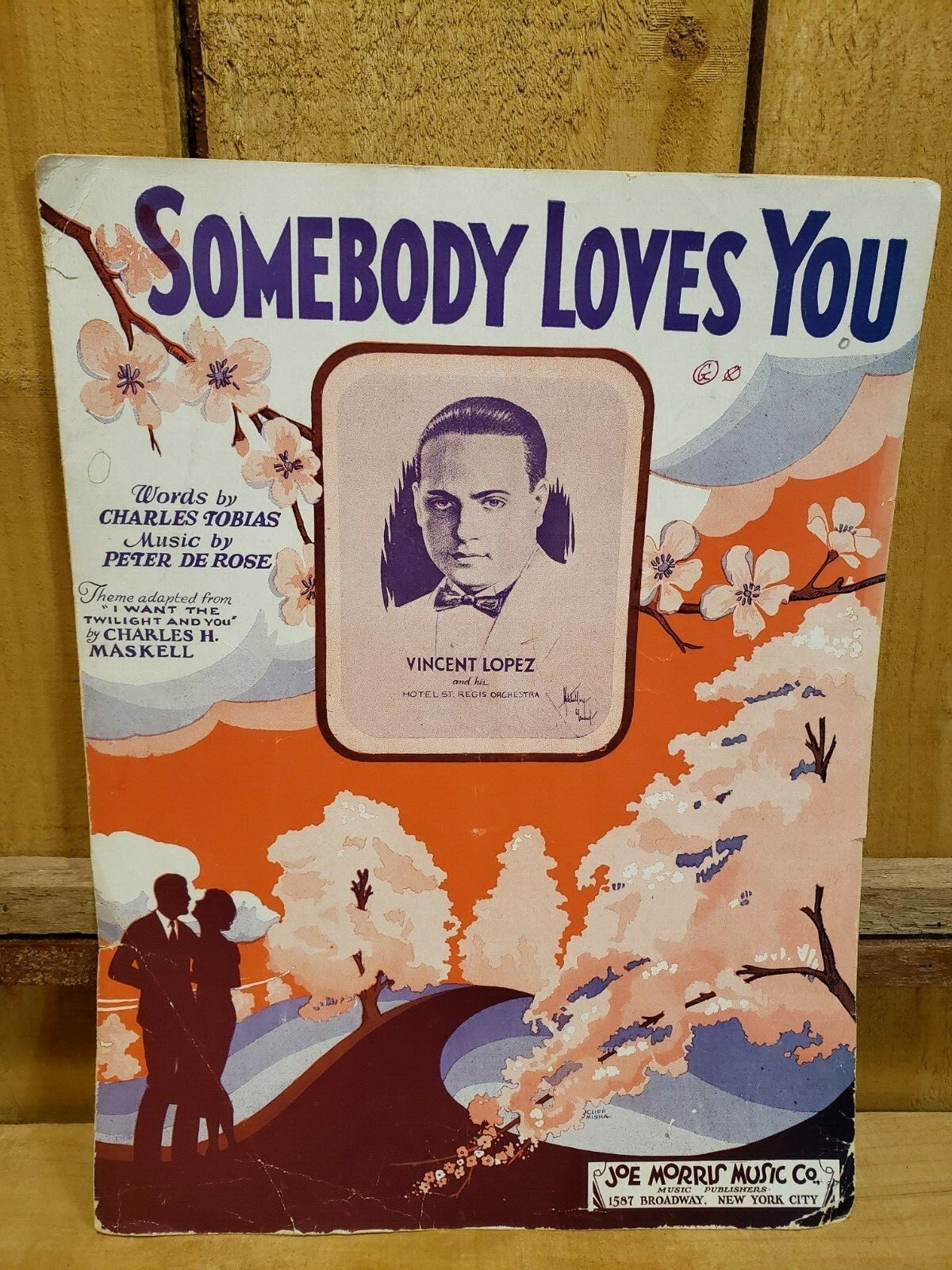 Up for sale is Somebody Loves you Featuring Vincent Lopes and his Hotel St. Regis Orchestra. Words by Charles Tobias, Music by Peter DeRose. All pages have been separated at the spine, there is some minor tears and chipping at the edges. a pages are here.