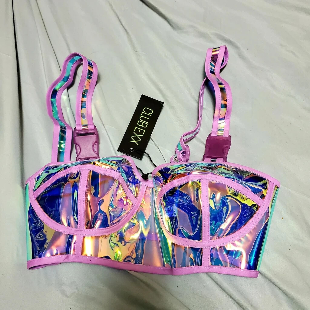Club Exx HOLO reflective, festival, party, dance, cute, sexy Rave top XXS, XS, S