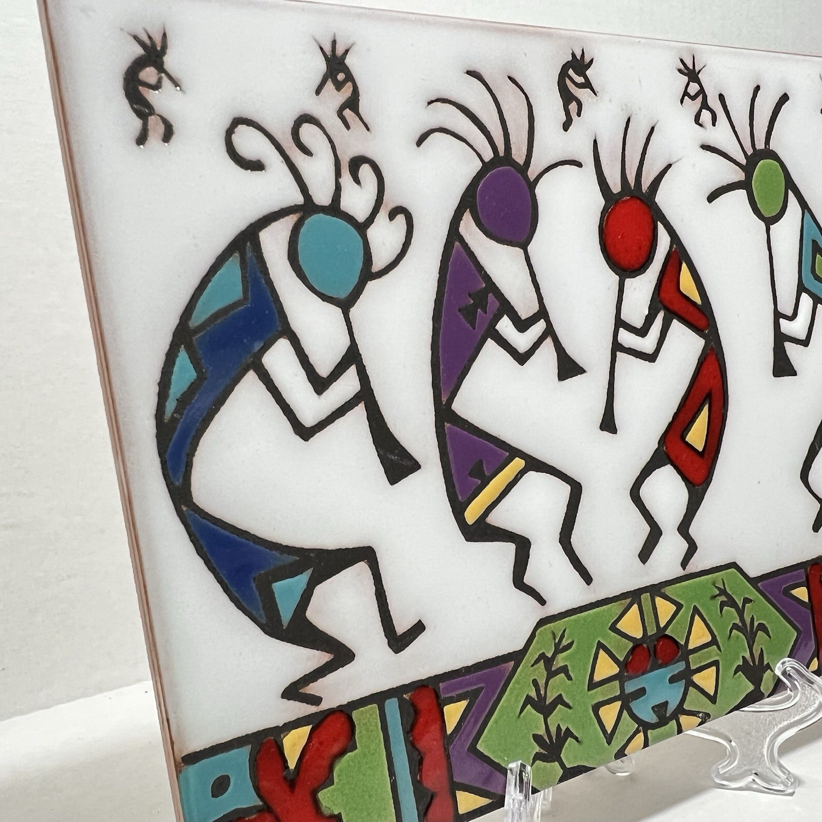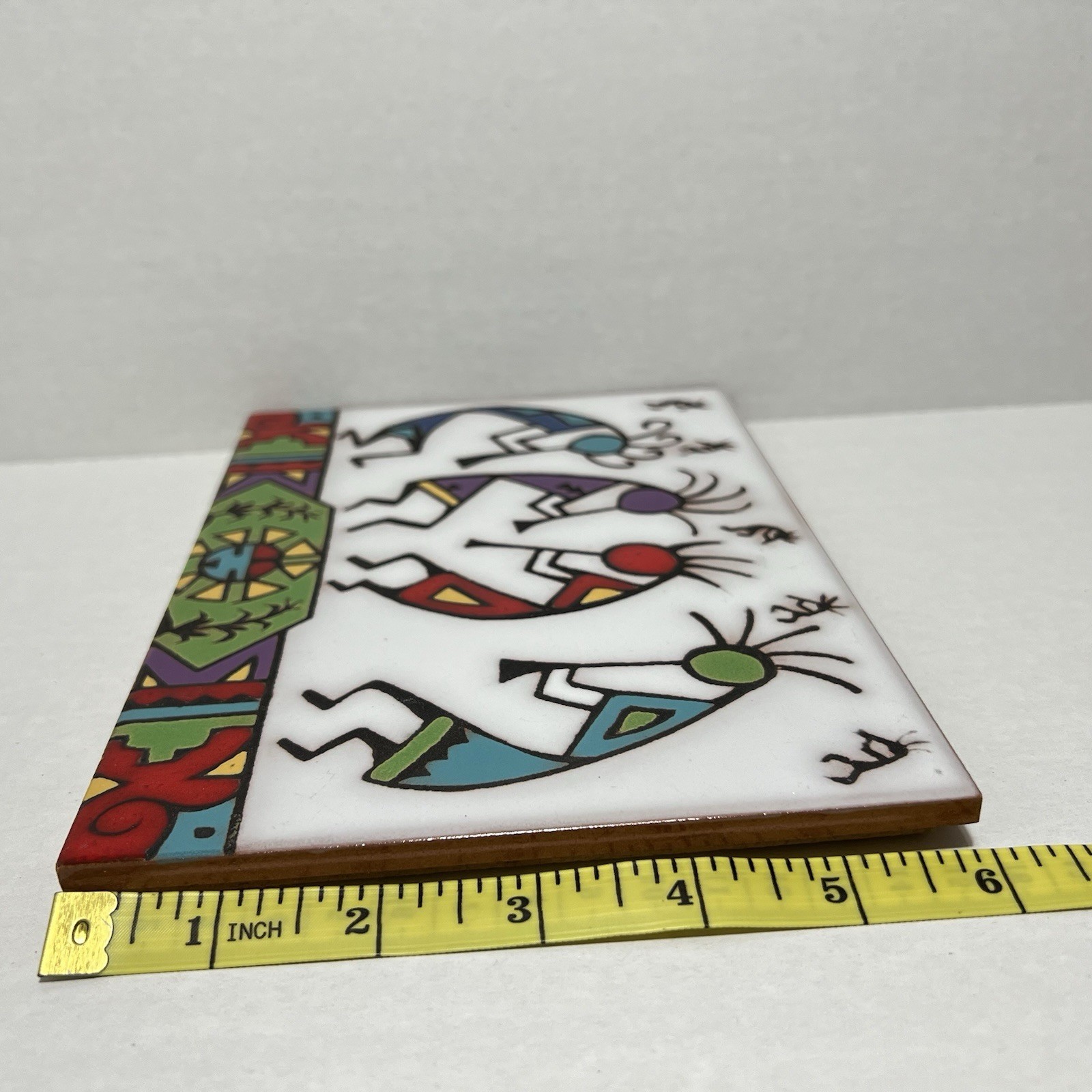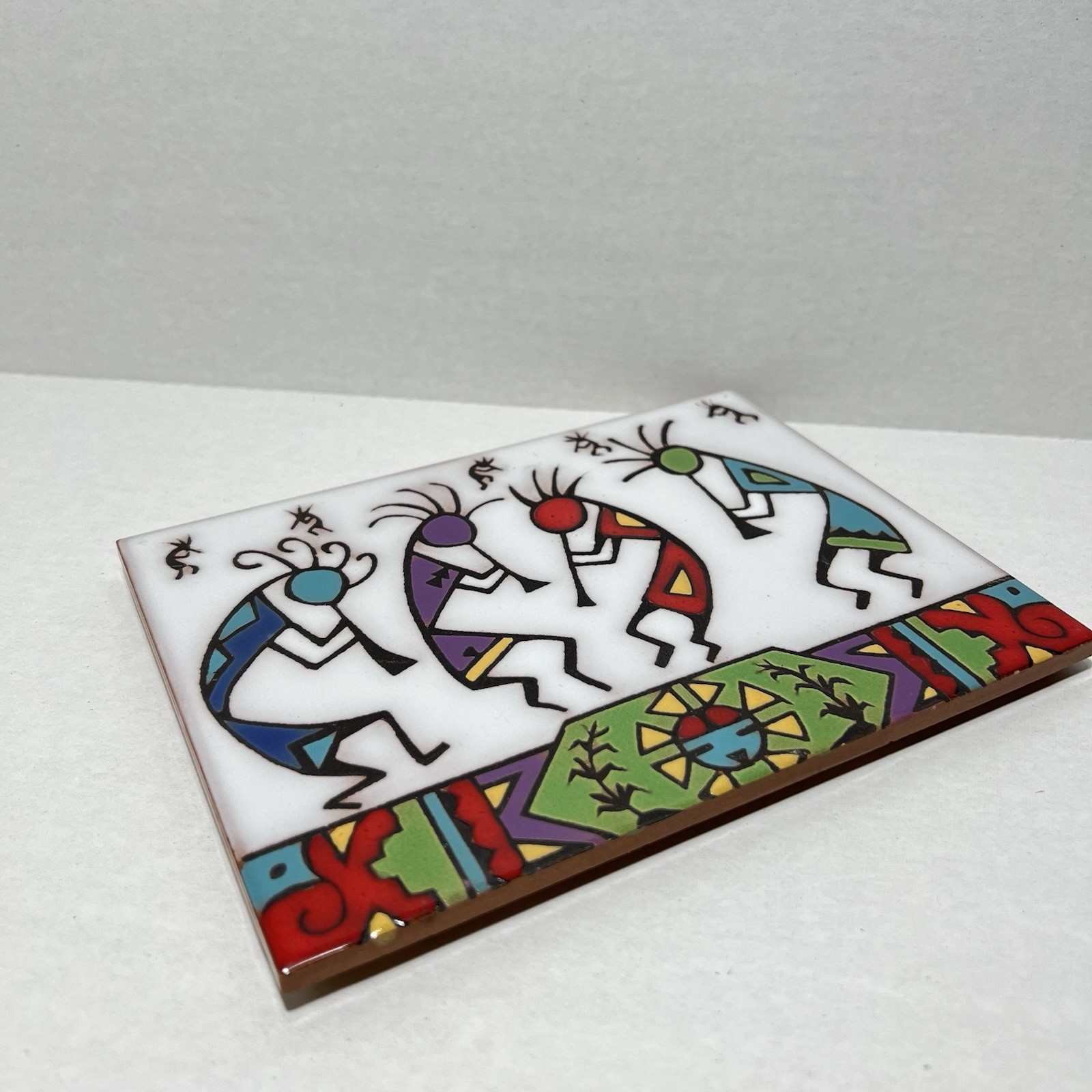 Christine Fitzgerald Tile Coaster Mag Mor Studios Kokopelli Hand Painted 6”x8”