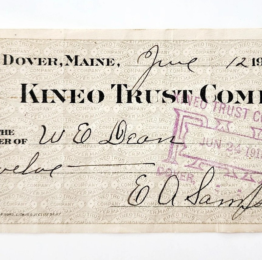 1915 Kineo Trust Company Bank Check E.A. and 32 similar items