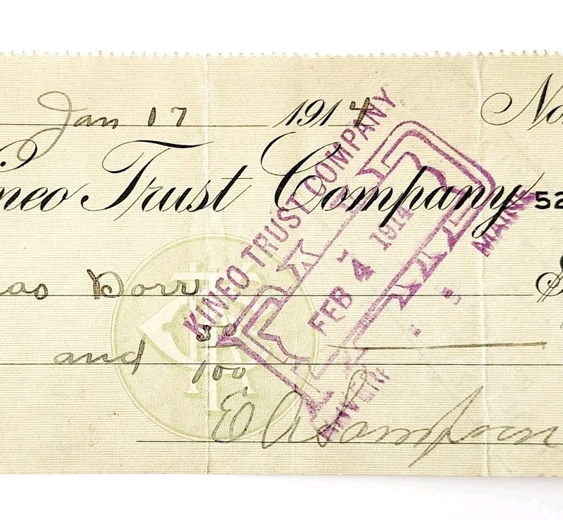 1914 Kineo Trust Company Bank Check E.A. and 48 similar items