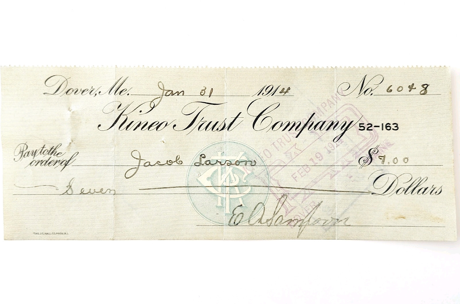 1914 Kineo Trust Company Bank Check E.A. and 48 similar items