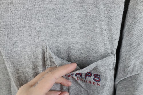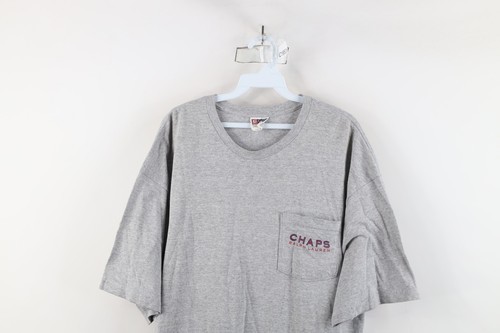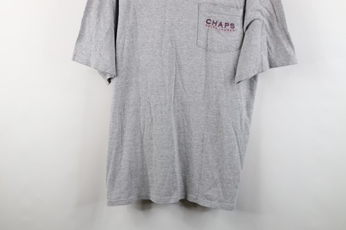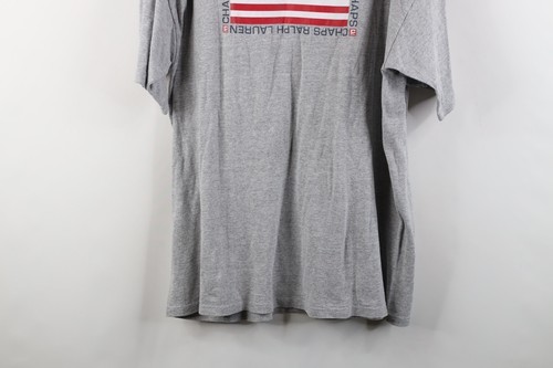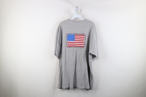 Vintage 90s Chaps Ralph Lauren Mens XL Spell Out USA Flag Pocket T-Shirt Gray