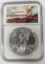 2016 Silber American Eagle Ausgewahlten Von NGC As MS-70 Erste Ausgaben 30th