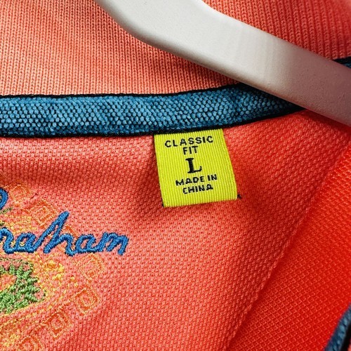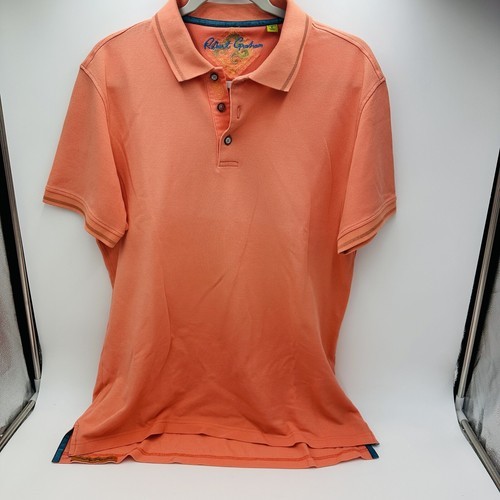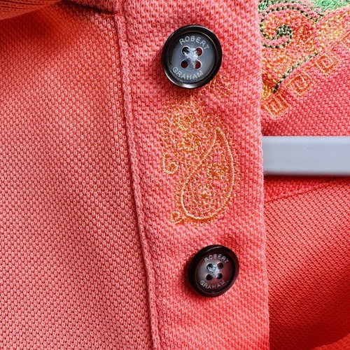 Robert Graham pique Polo Shirt Mens Salmon Short Sleeve Golf Casual size L.