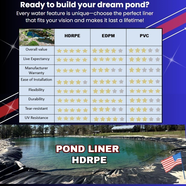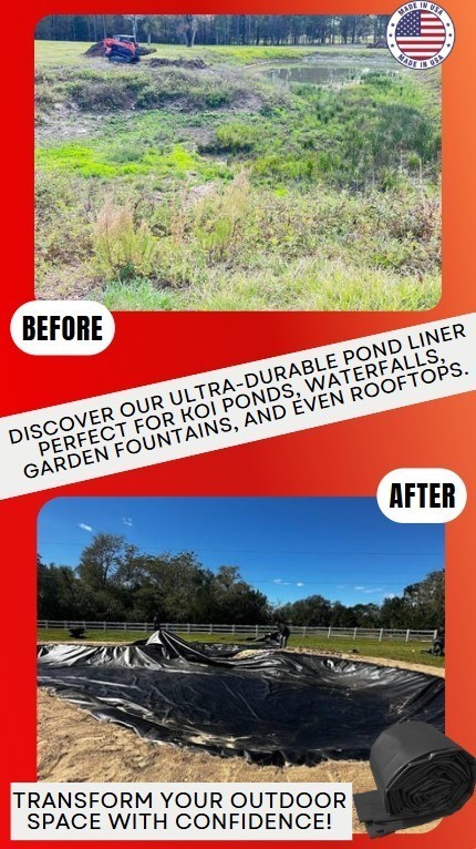 Based in Florida, we specialize in high-quality HDRPE (High density reinforced Polyethylene) pond liners, along with complete installation kits and accessories. We supply everything needed to build and maintain a safe, functional and long-lasting pond.
