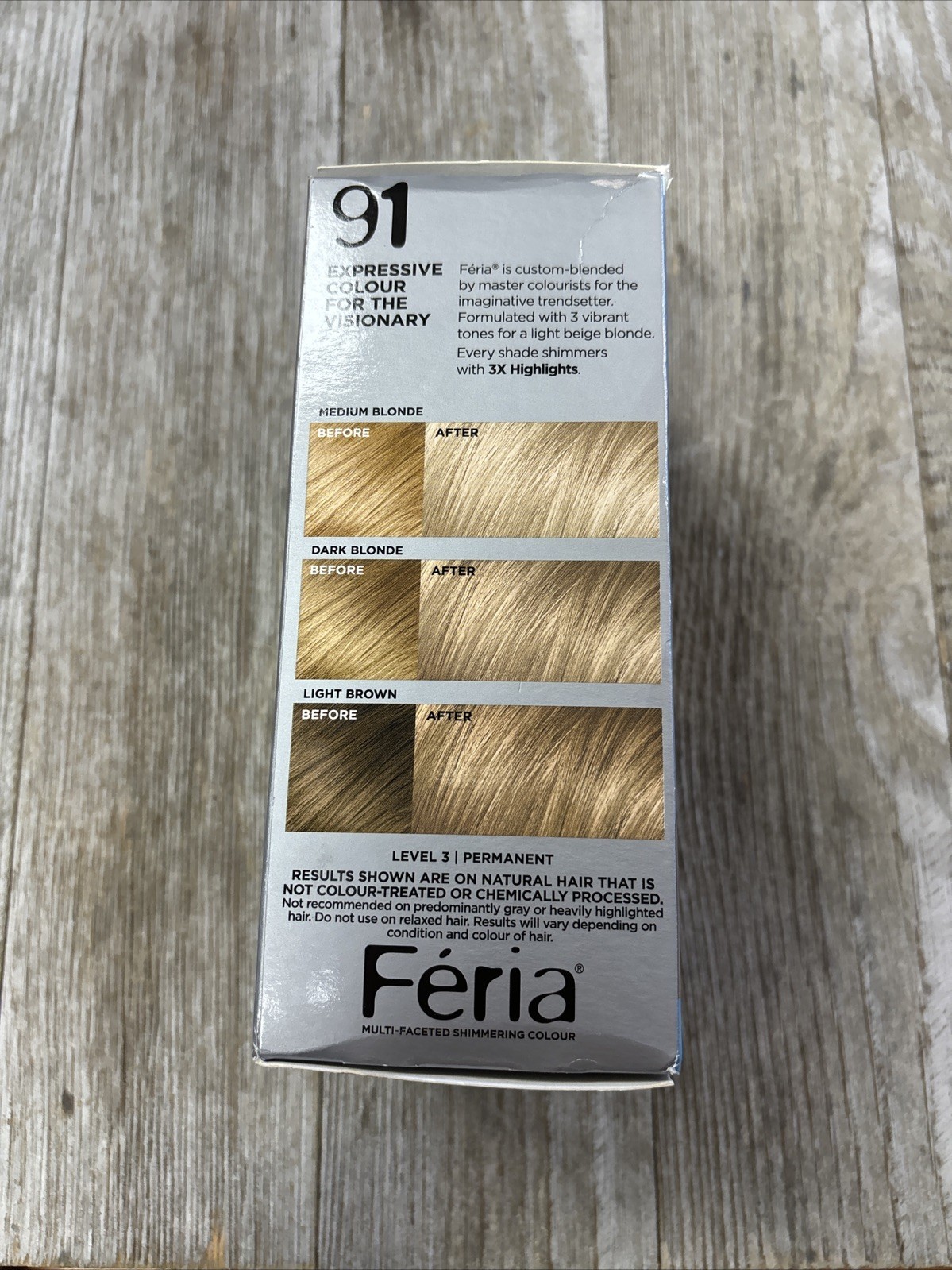 L'Oreal Paris Feria Multi-Faceted Shimmering Permanent Hair Color, 91 Champagne