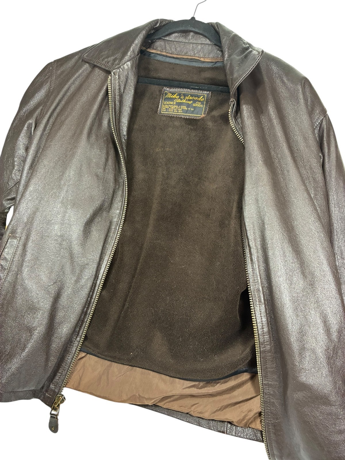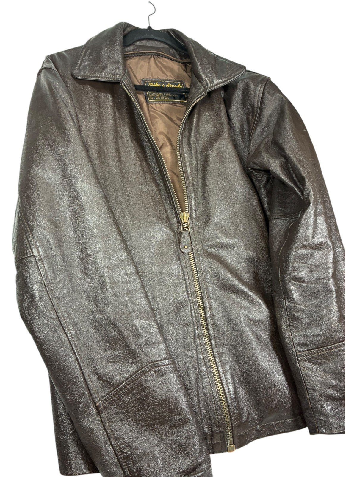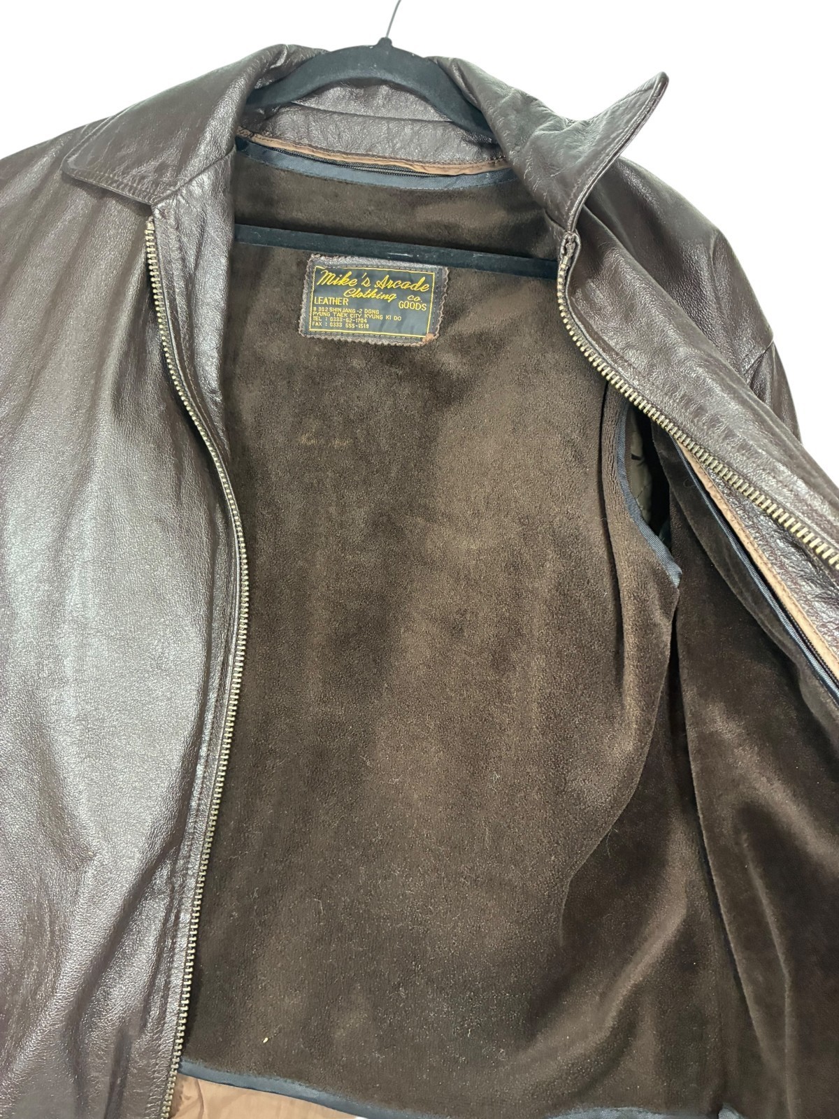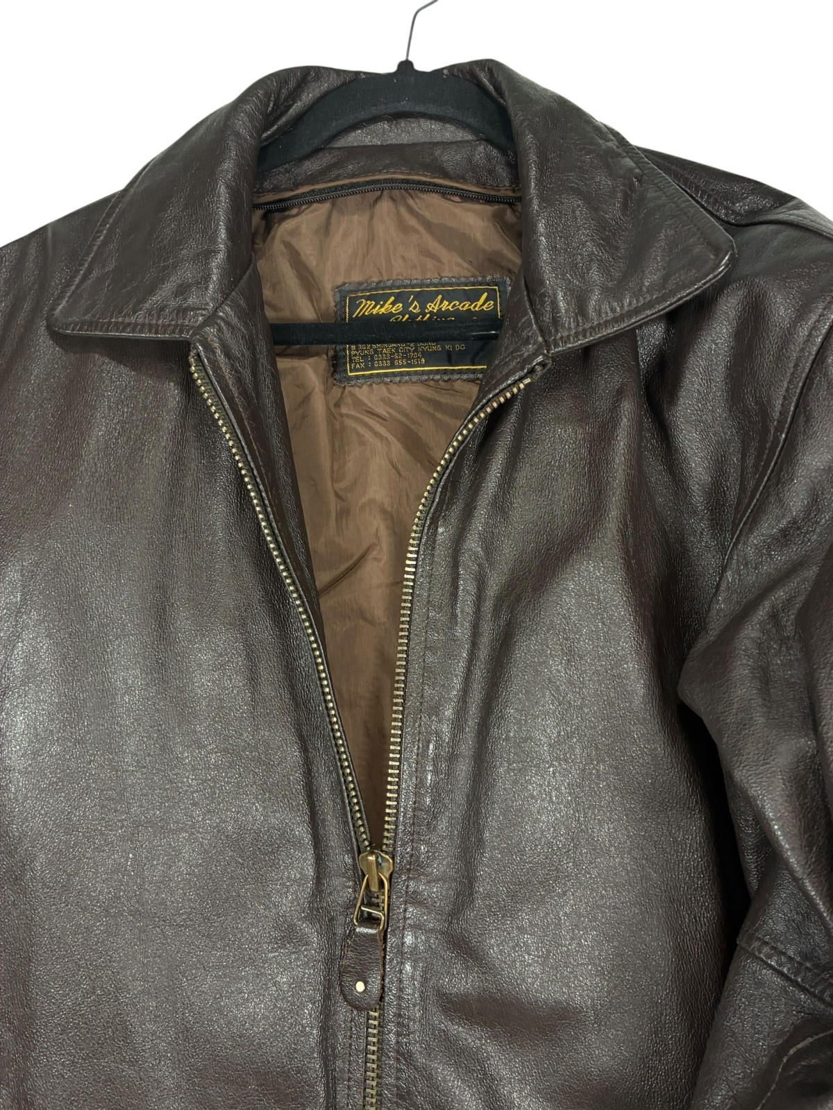 Mikes Arcade Clothing Co. Brown Leather Bomber Jacket removable liner size L, 45in chest