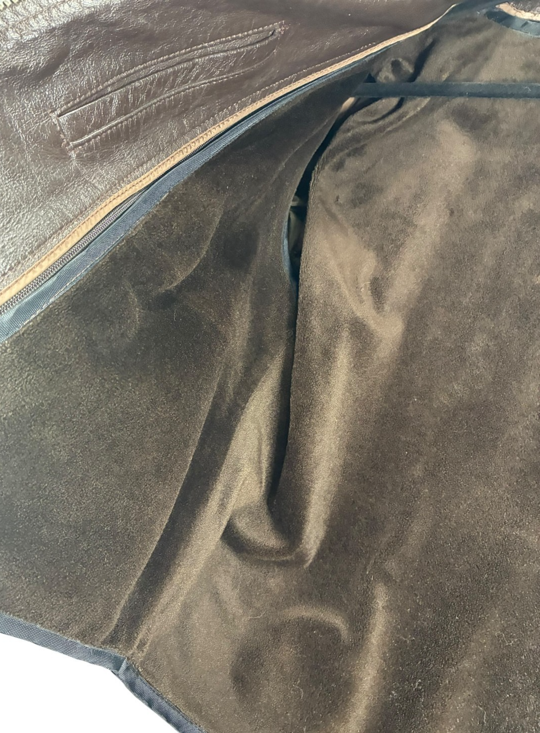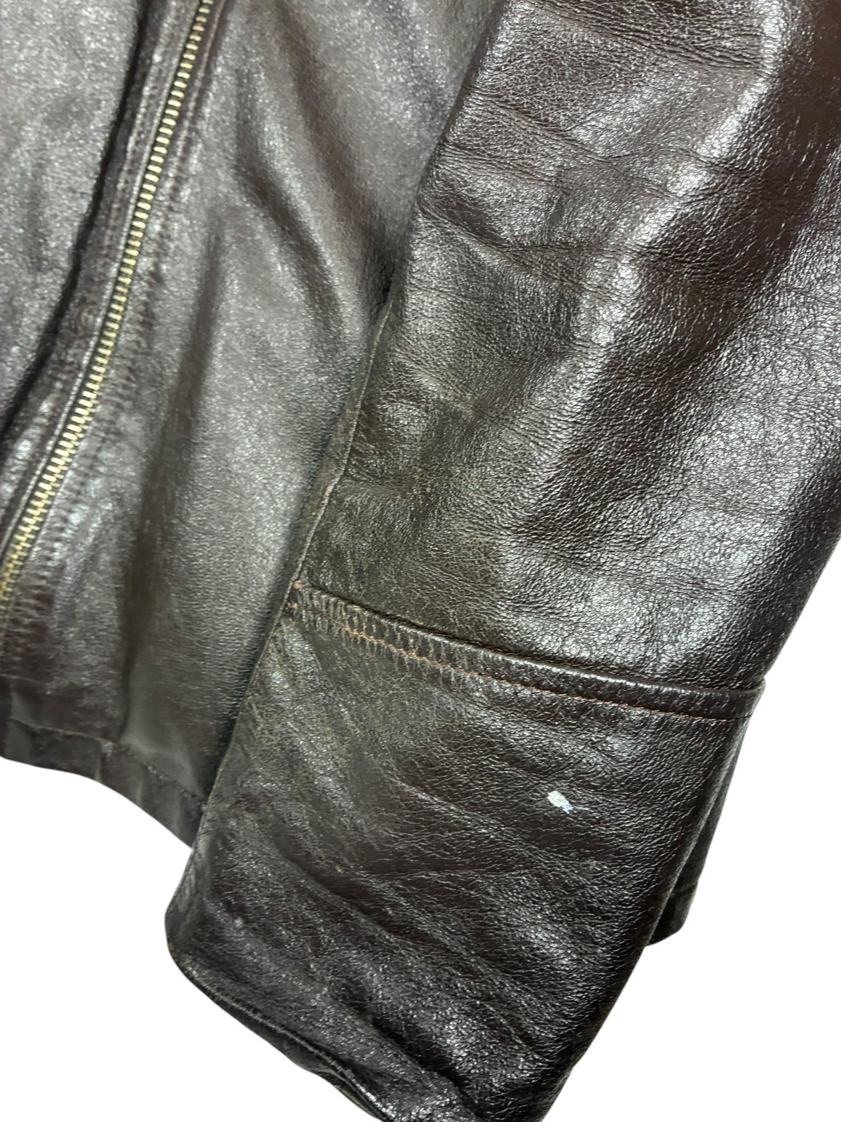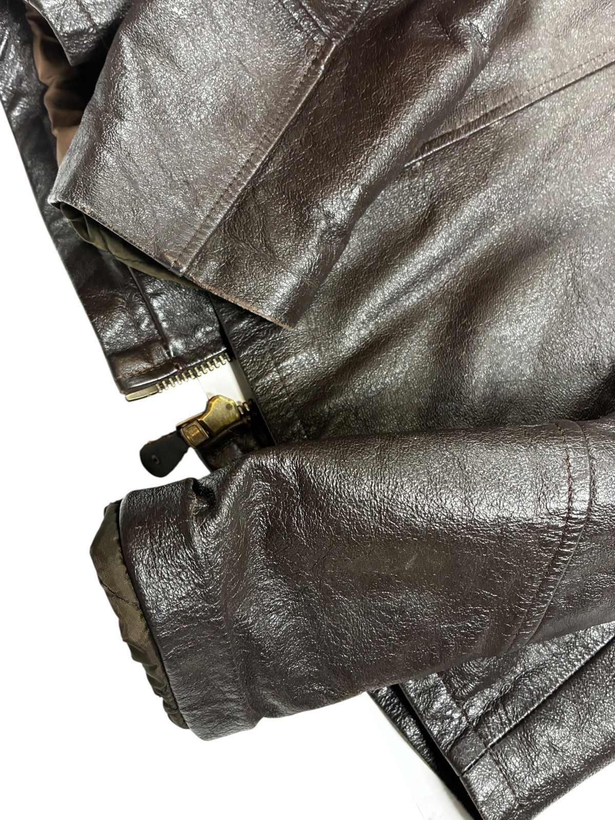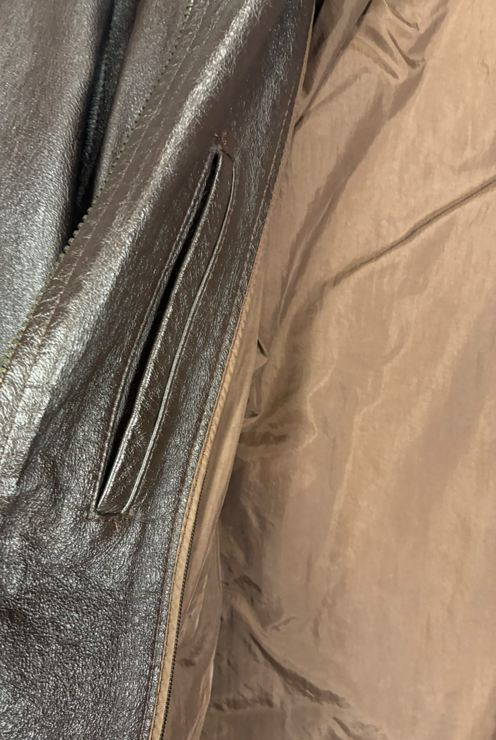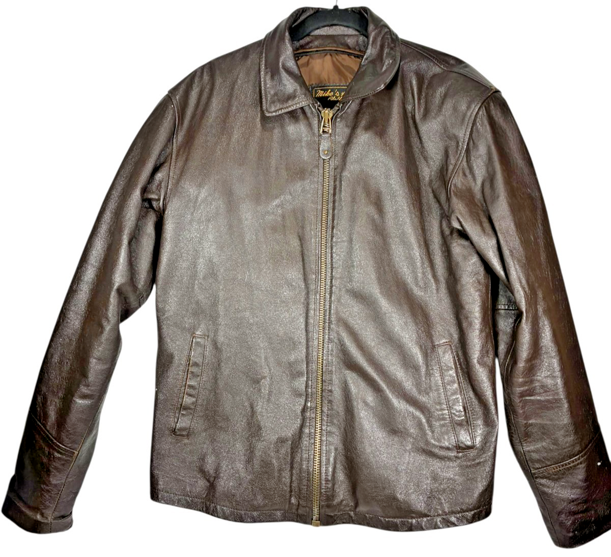 Mikes Arcade Clothing Co. Brown Leather Bomber Jacket removable liner size L, 45in chest