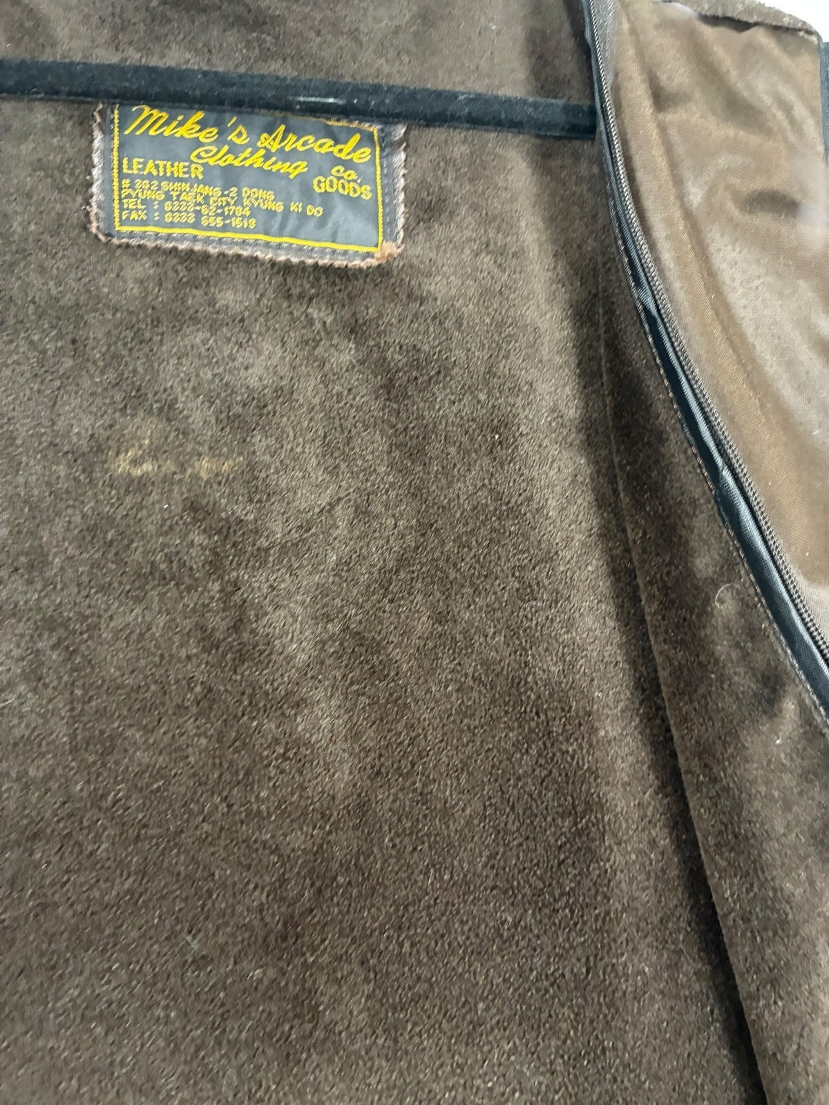 Mikes Arcade Clothing Co. Brown Leather Bomber Jacket removable liner size L