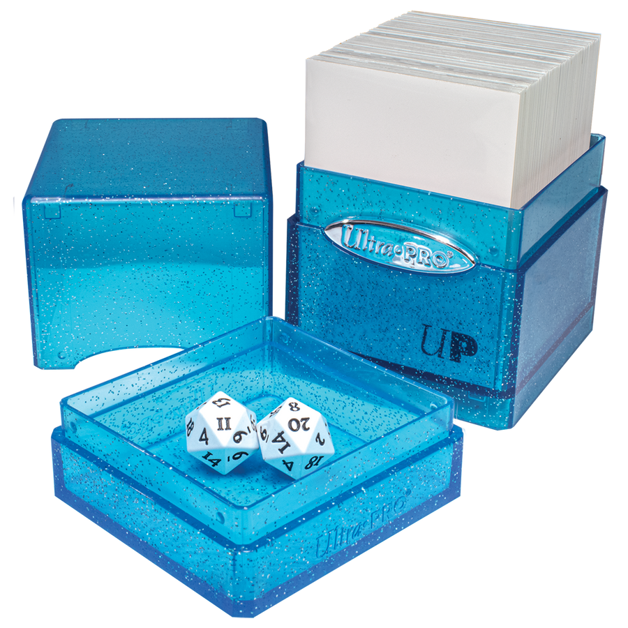 The Satin Tower is Ultra PRO?s best selling Deck Box! The durable, injection molded plastic shell is designed to store and protect 100+ standard size trading cards in Ultra PRO Deck Protector sleeves and includes a spacious bottom compartment for dice, coins, or life counters. The unique snap-fit locking mechanism keeps your valuable cards and components securely stored. This Satin Tower features a Glitter finish, but Satin Tower is also available with Hi-Gloss and Classic Satin finishes! Collect them all!
