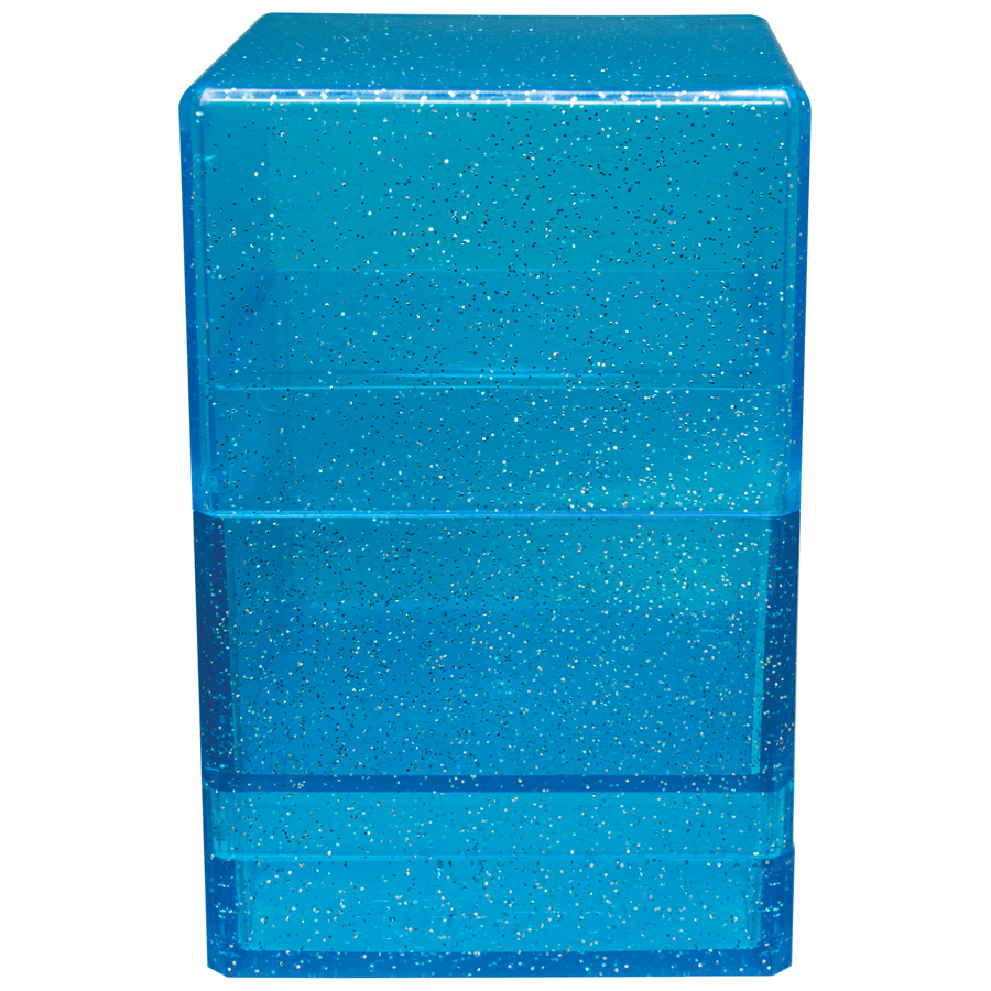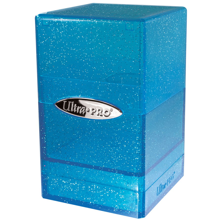 The Satin Tower is Ultra PRO?s best selling Deck Box! The durable, injection molded plastic shell is designed to store and protect 100+ standard size trading cards in Ultra PRO Deck Protector sleeves and includes a spacious bottom compartment for dice, coins, or life counters. The unique snap-fit locking mechanism keeps your valuable cards and components securely stored. This Satin Tower features a Glitter finish, but Satin Tower is also available with Hi-Gloss and Classic Satin finishes! Collect them all!