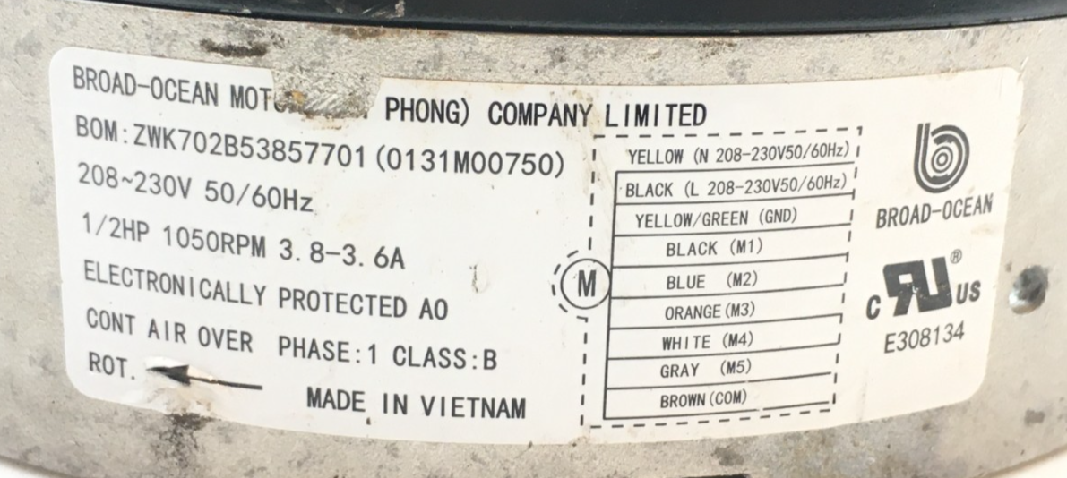 This is BROAD-OCEAN ZWK702B53857701 0131M00750 Module ONLY 1/2HP KMSAH013B02 208/230V used part.