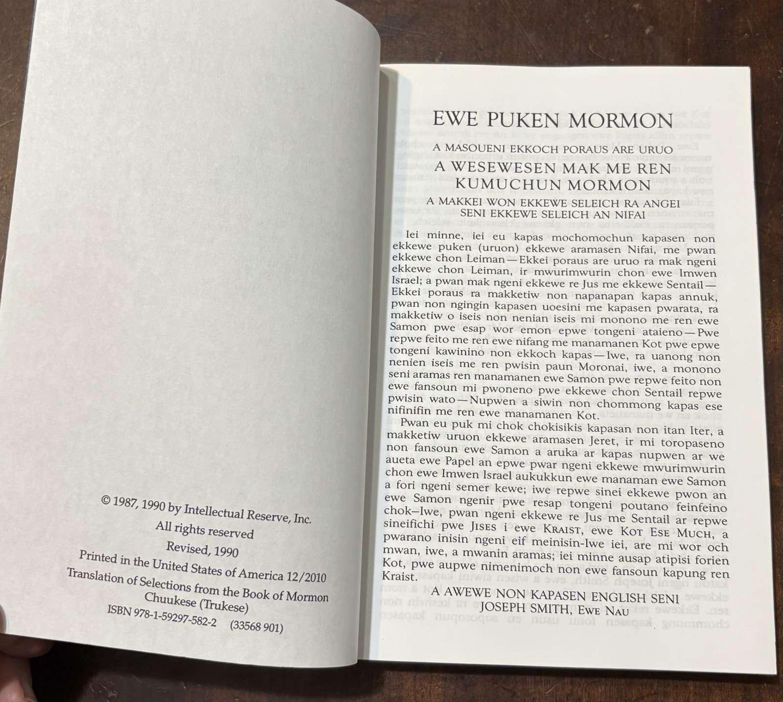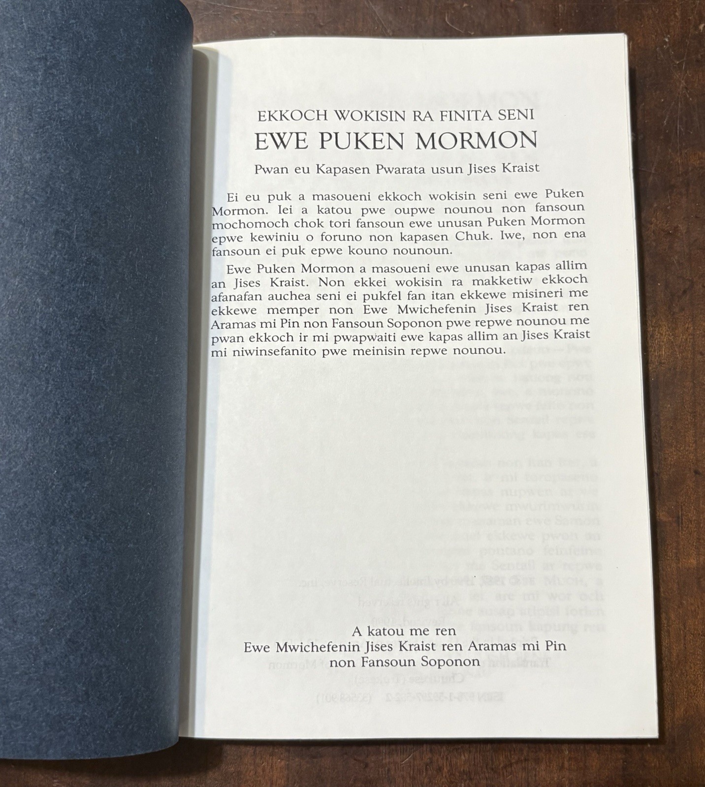 Ewe Puken Mormon Trukese Chuukese Translation Book Of Mormon Language LDS Chuuk