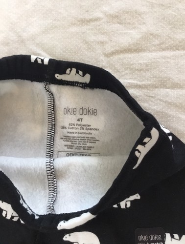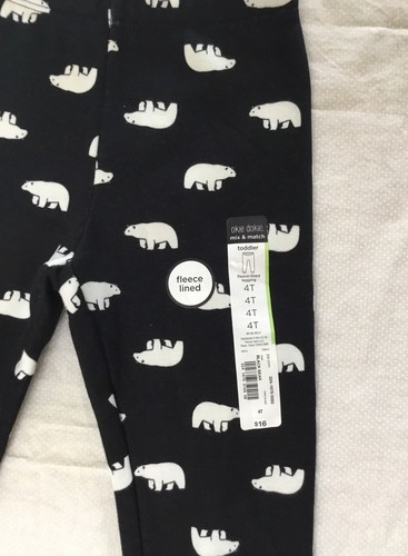 Okie Dokie Little Girls Polar Bear Black Fleece Lined Leggings 4T New W/T