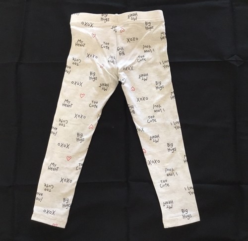 Off white pants with pattern of x, o, heart and words describing love (Too Cute, Big Hugs, My Heart, I Love You)
