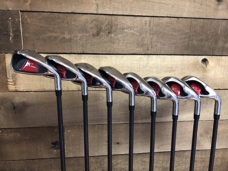 The X5 Wide Sole iBRID irons are constructed from two pieces resulting in a hollow body that moves significant weight to the back and bottom of the club. Two-piece metal wood-inspired construction promotes a low Center of Gravity and high Moment of Inertia. Weight is relocated to the perimeter for enhanced forgiveness. The CG is located deep behind the face for a more solid feel on impact and greater consistency. The wide sole design makes alignment at address easy and promotes a higher launch angle for increased distance. The game improvement X5 irons are designed to hit longer and straighter with more accuracy and better feel.