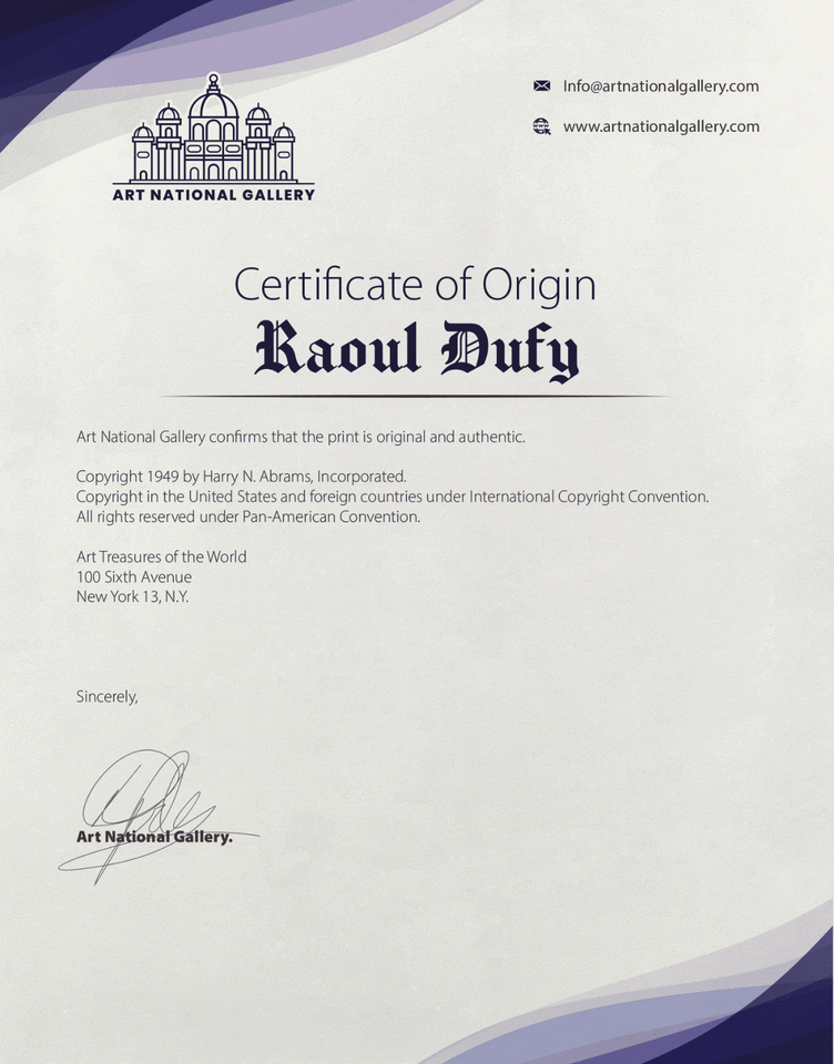 Raoul Dufy (1877 - 1953), Born in Le Havre, he infused modern art with lightness and color, capturing the charm of everyday life. His cheerful style, influenced by Fauvism, made him a celebrated painter of joy, movement, and the pleasures of the French Riviera.