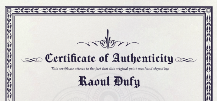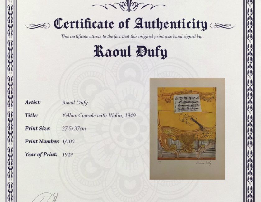Raoul Dufy - Original Signed Print with COA and $3,500 Appraisal. -