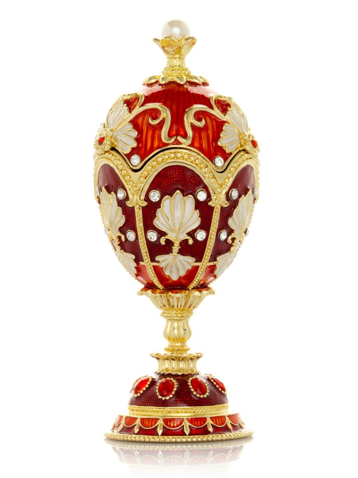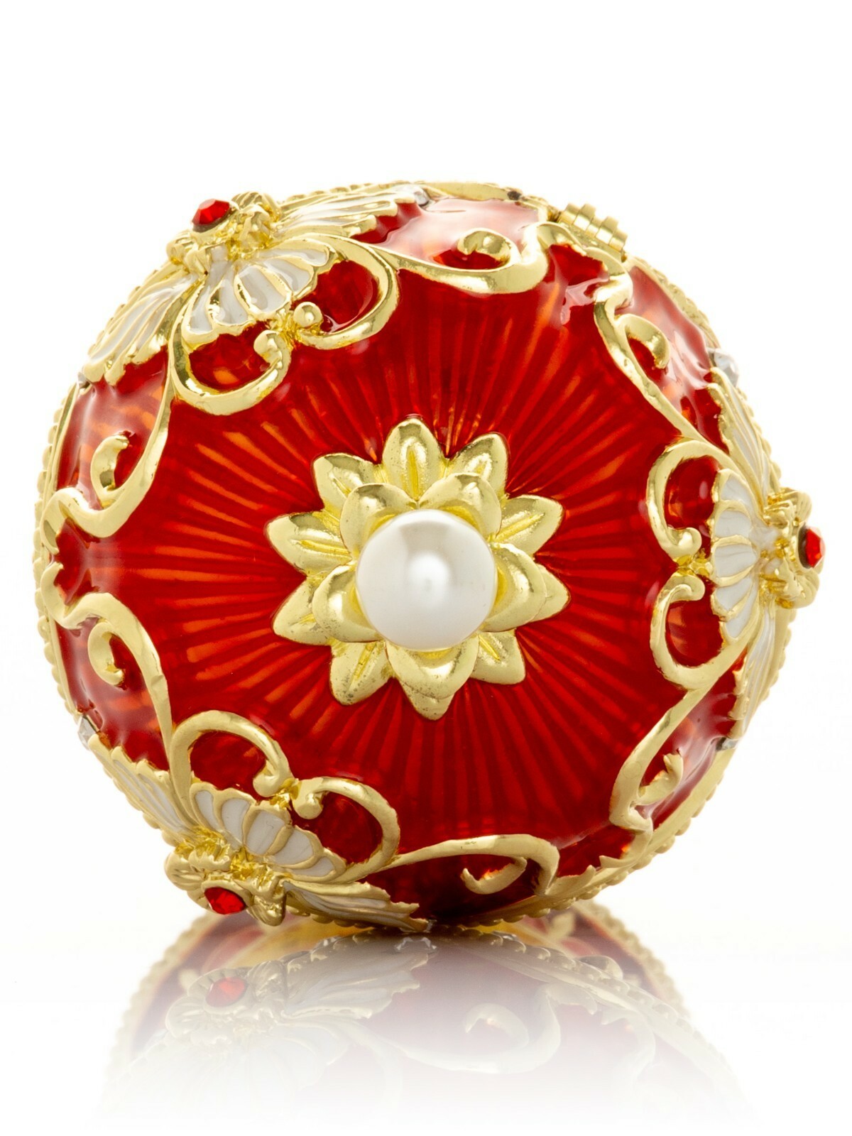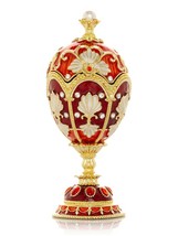 Keren Kopal Handmade Red flower music Egg Trinket Box with Austrian Crystals
