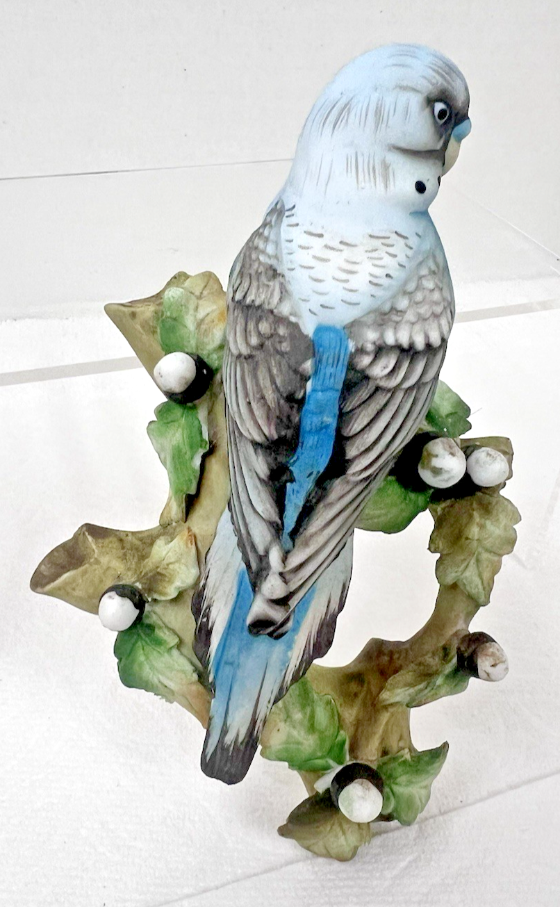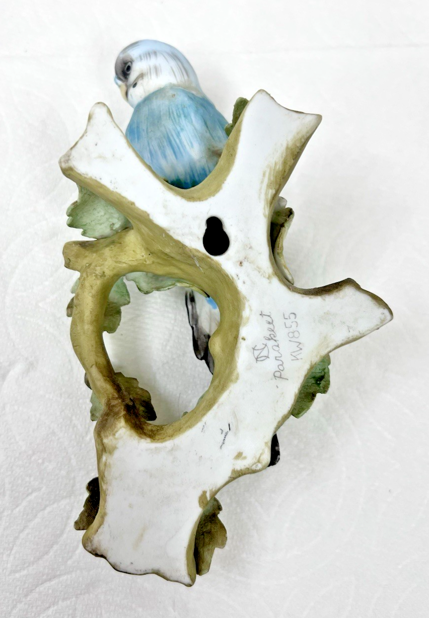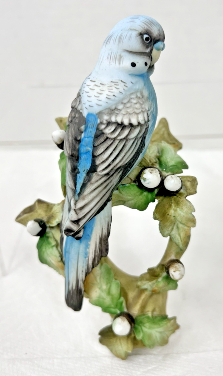 Vintage Parakeet 3D Wall Plaque Hanger Bird on Branch w Berries Leaves 6 x 3.5 x 2.5 inches In good shape no chips or breaks I would guess it is from Japan but it only has a number