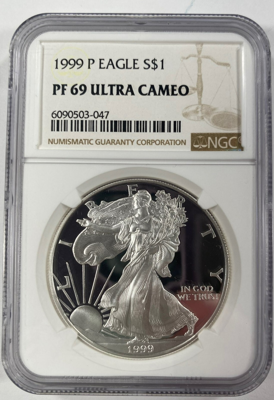 1999-P $1 Argento American Eagle Proof Graded Da NGC Come PF69 Ultra Cameo