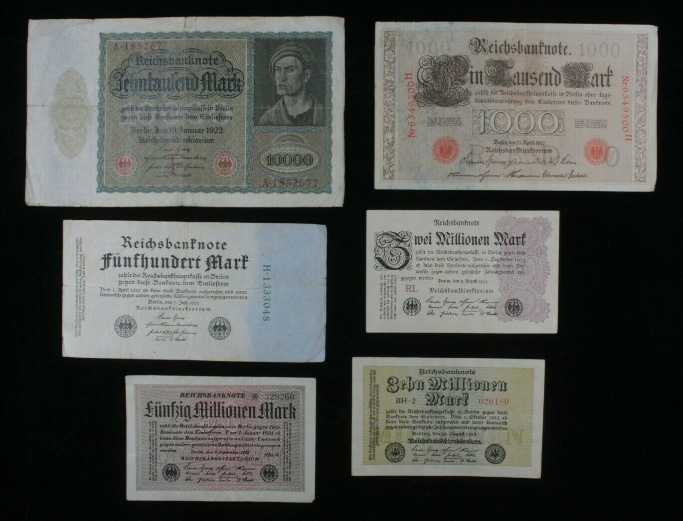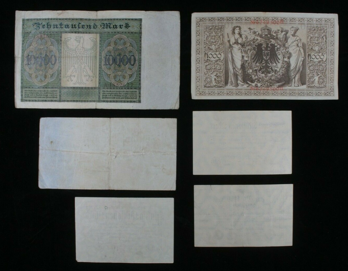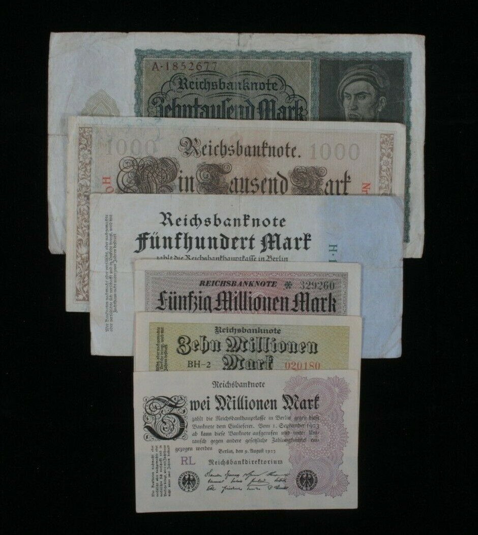 1910-1923 Germany 6-Notes Lot (1) German Empire (5) Weimar Republic Marks