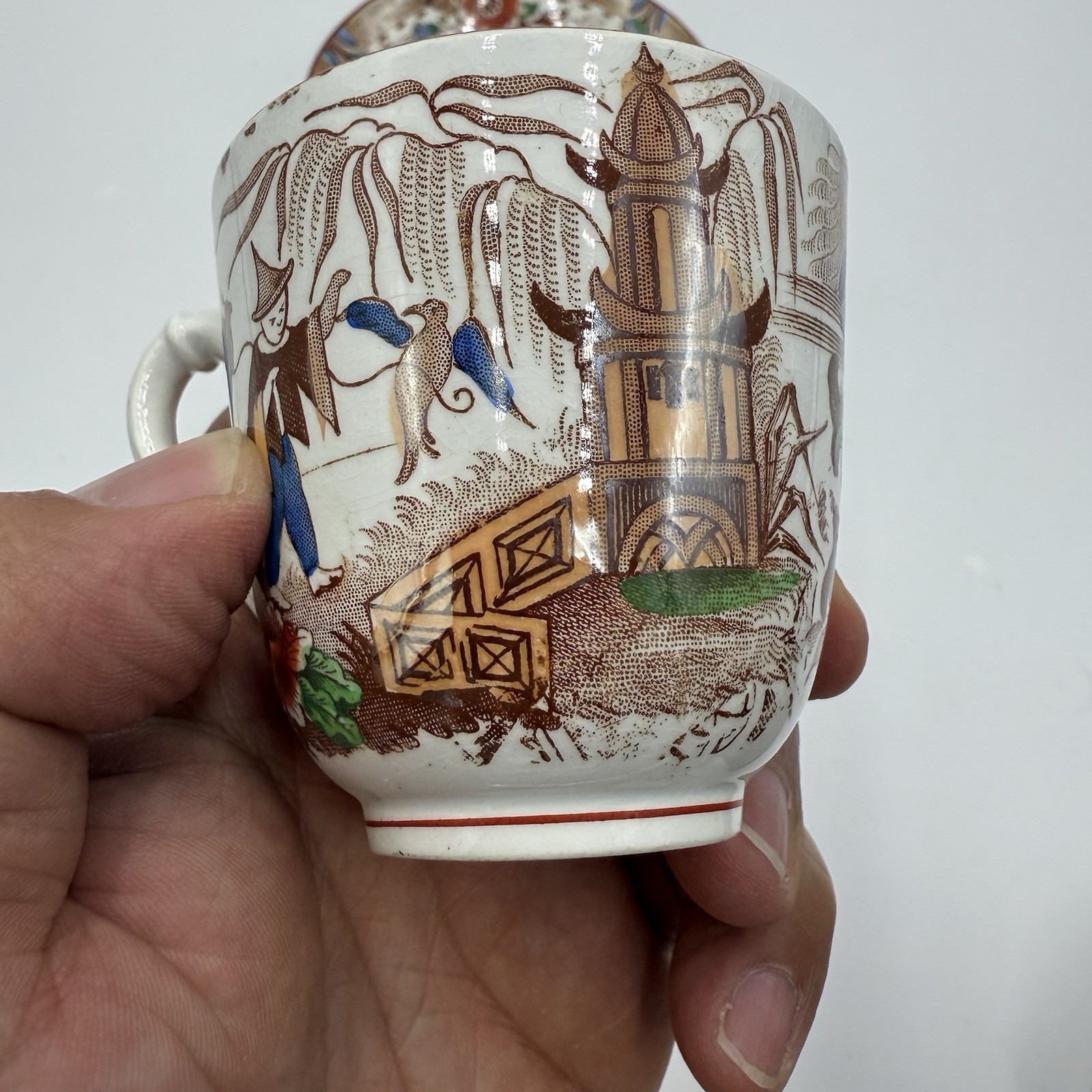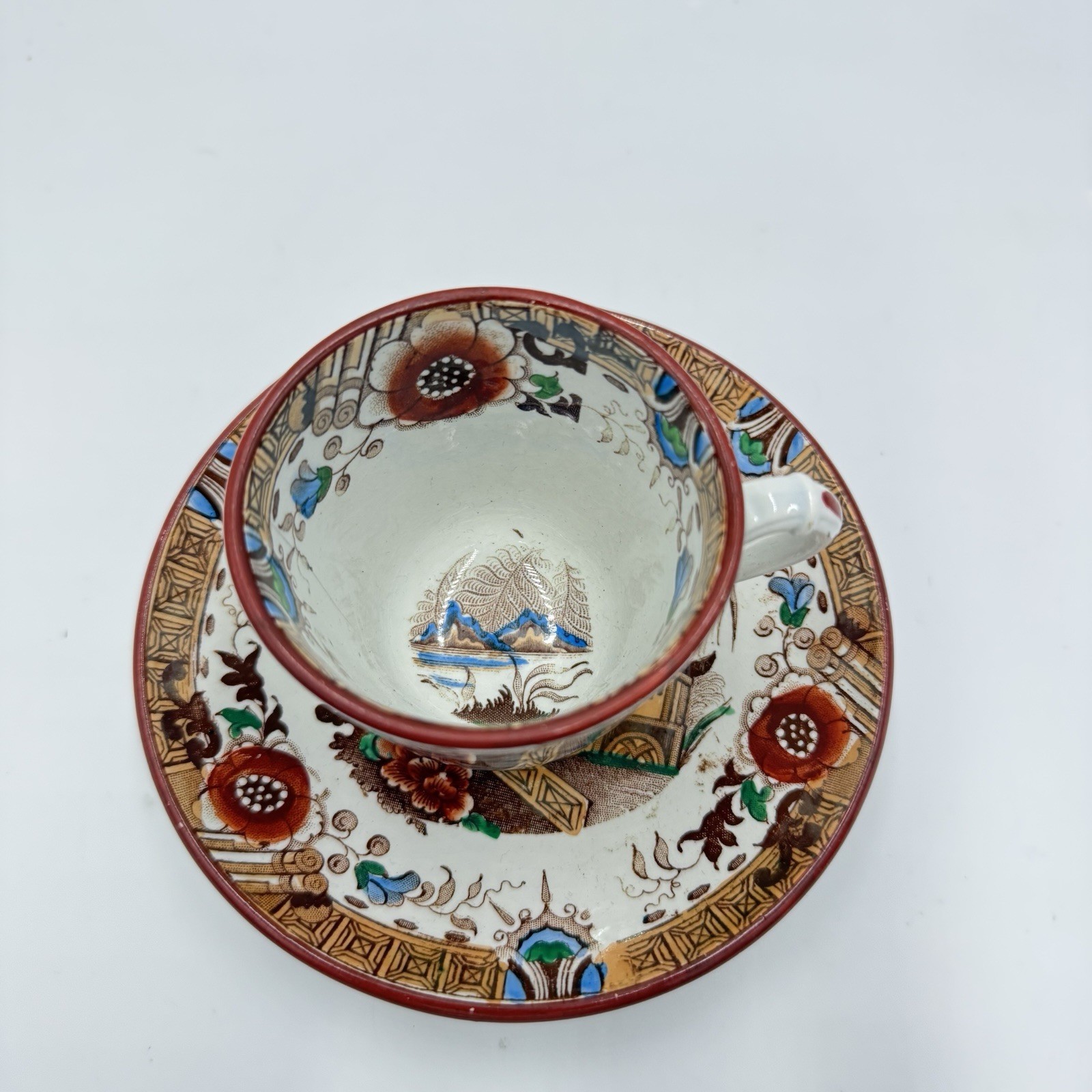 Antique 1875 Opaque de Sarreguemines Kyoto Demitasse Tea Cup & Saucer Set
