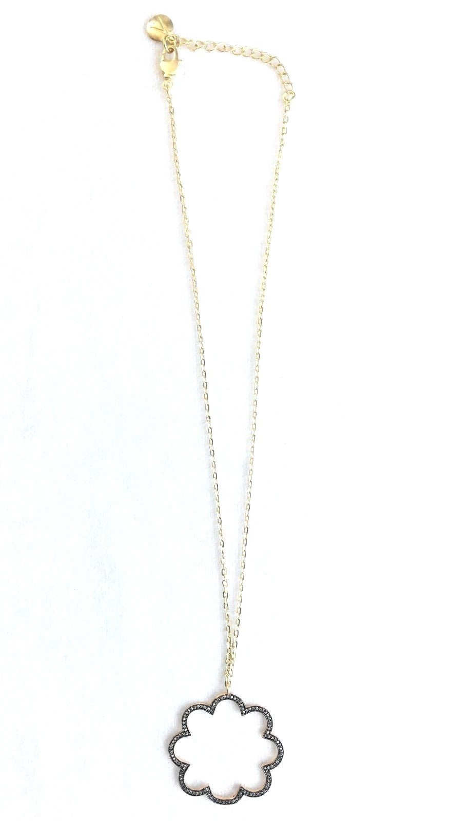 Questo e per un nuovo atelier Mun 16 " + 2" con pavimentazione in oro set cubico La lunghezza e estensione da 16 " + 2" Il ciondolo di fiori misura 1,5 "di diametro