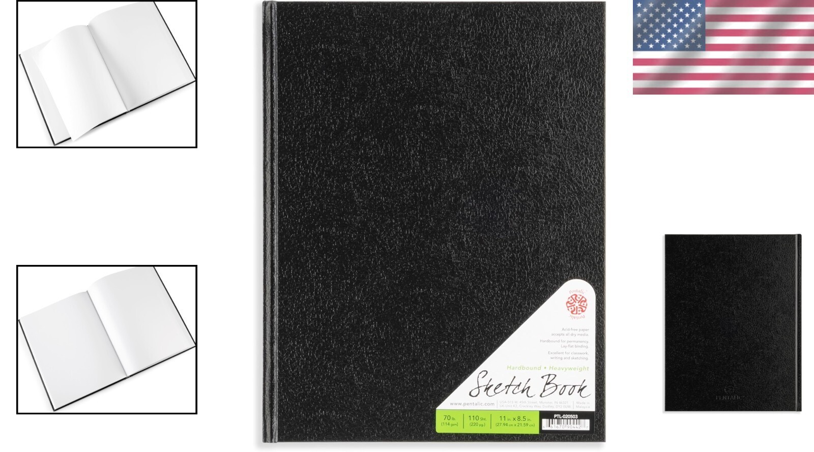 The hardbound spine is designed to lay flat for convenience while sketching or writing.