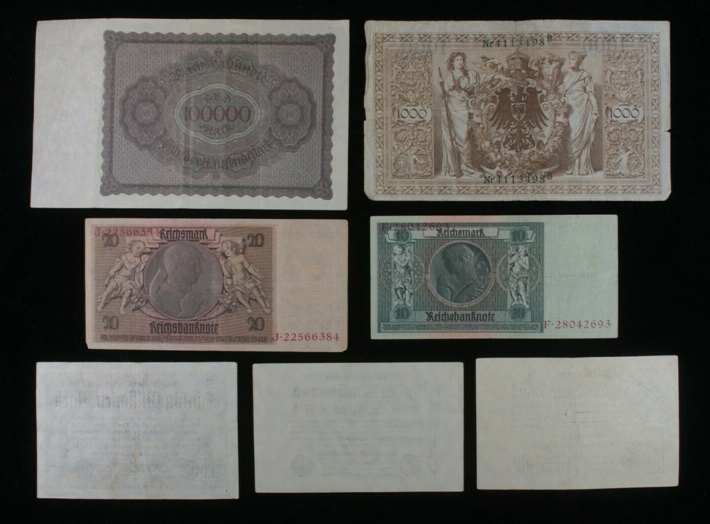 1910-1929 Germany 7-Notes Set // 10 Mark to 10 Million Mark // Empire Weimar