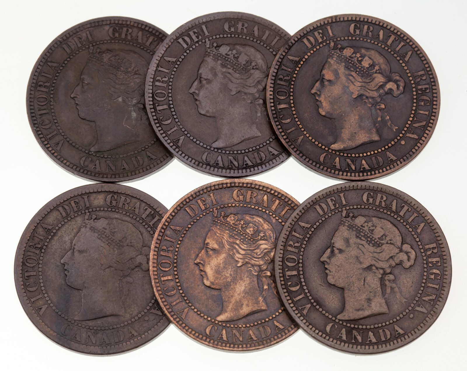 Kanada Lot von 6 großen Cent (1876-h bis 1901) fein+ bis xf+ Zustand