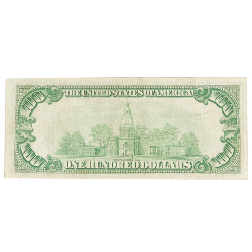 Billete de cien dolar La nota esta en condiciones extra finas. Algunos arrugados/pliegues a lo largo del centro horizontal y tercios verticales. Algunas manchas rojas en el frente. No hay agujeros. Ver fotos para mas detalles. CaliforniaCompradores de Lifornia: Se agregara un impuesto sobre las ventas del 9 % Confirmacion de seguro y entrega o confirmacion de firma Llamenos con cualquier consulta: Departamento web de la empresa continental de monedas y joyas: Lunes a viernes, de 10:30 a.m. a 6 p.m. (818-781-4232) Artículo de referencia # USN-13606 en compras múltiples. no se combinaría. Agradecemos su comprension.