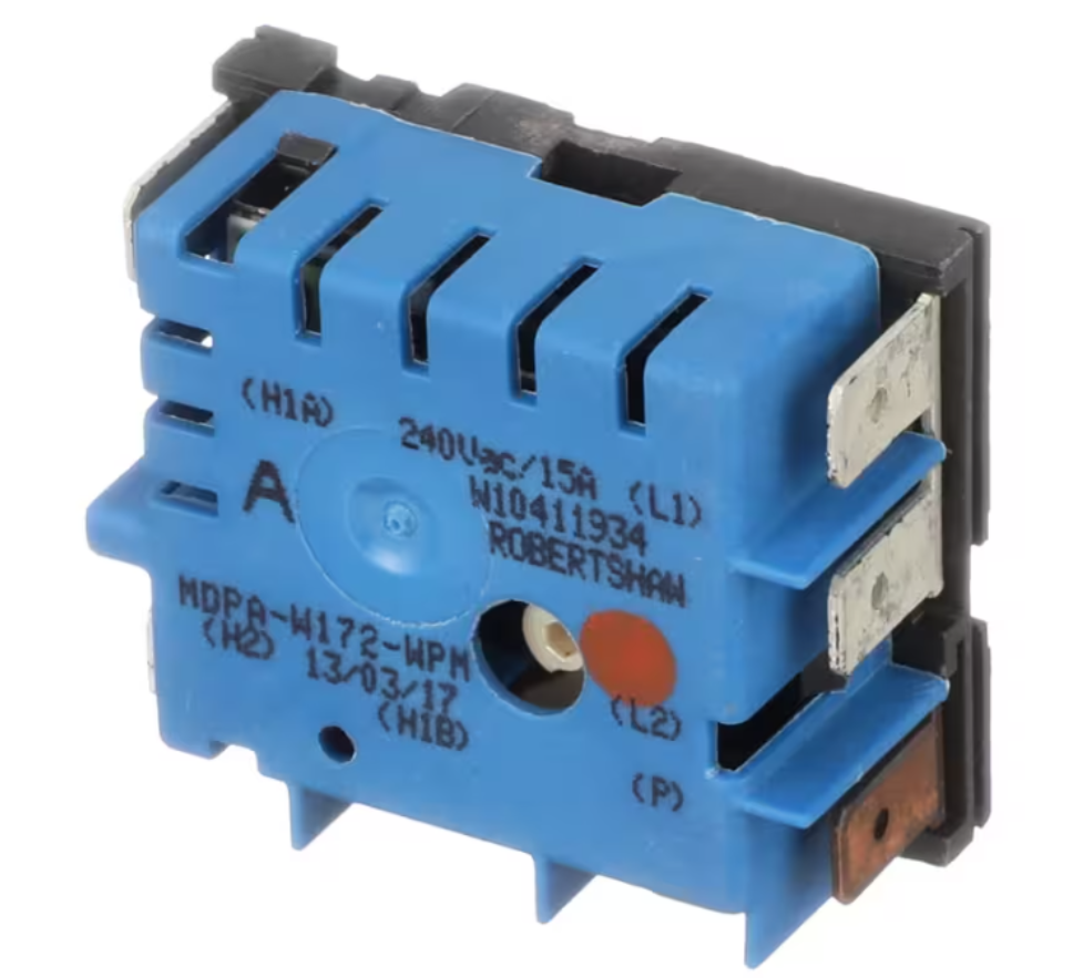The Whirlpool MDPA-W172-WPM / W10411934 Infinite Switch is a genuine OEM replacement part for Whirlpool and Maytag ranges. This single-pole surface element control regulates the power level of the heating element, allowing you to adjust cooking temperatures accurately. If your burner stays on high, won?t heat at all, or doesn?t adjust properly, replacing the switch restores safe, precise, and reliable cooking control.