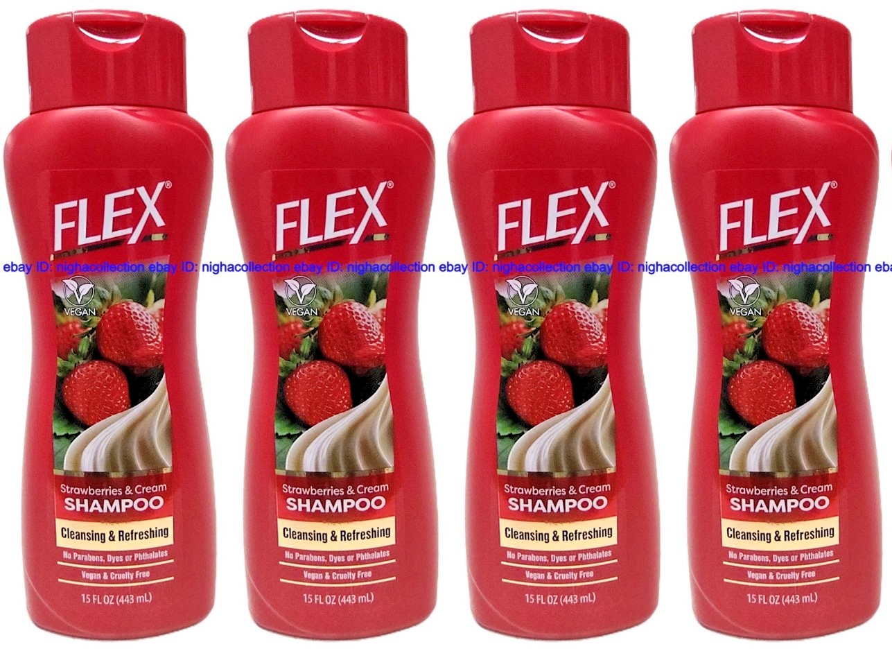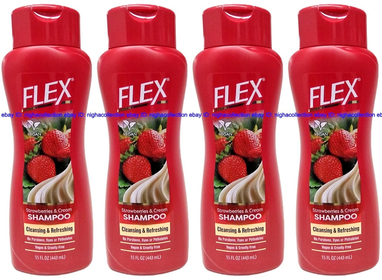 ( Lot 4 Bottles ) FLEX strawberries & cream Shampoo 15 Oz Each